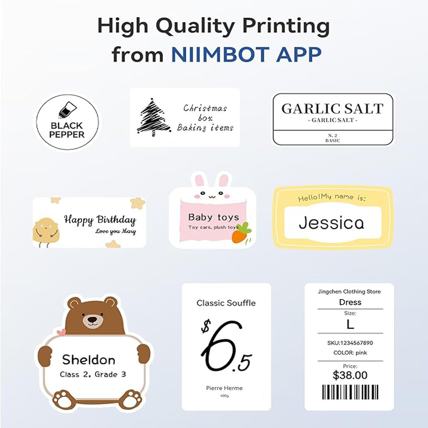 Easy To Use : B1 bluetooth label maker supports iOS & Android and PC. The app included more than support 30+ fonts/Languages, 100+ borders, and 1500+ symbols. Just need to download the free app, choosing and connecting printer model B1 from NIIMBOT APP, Then Enjoy Printing.