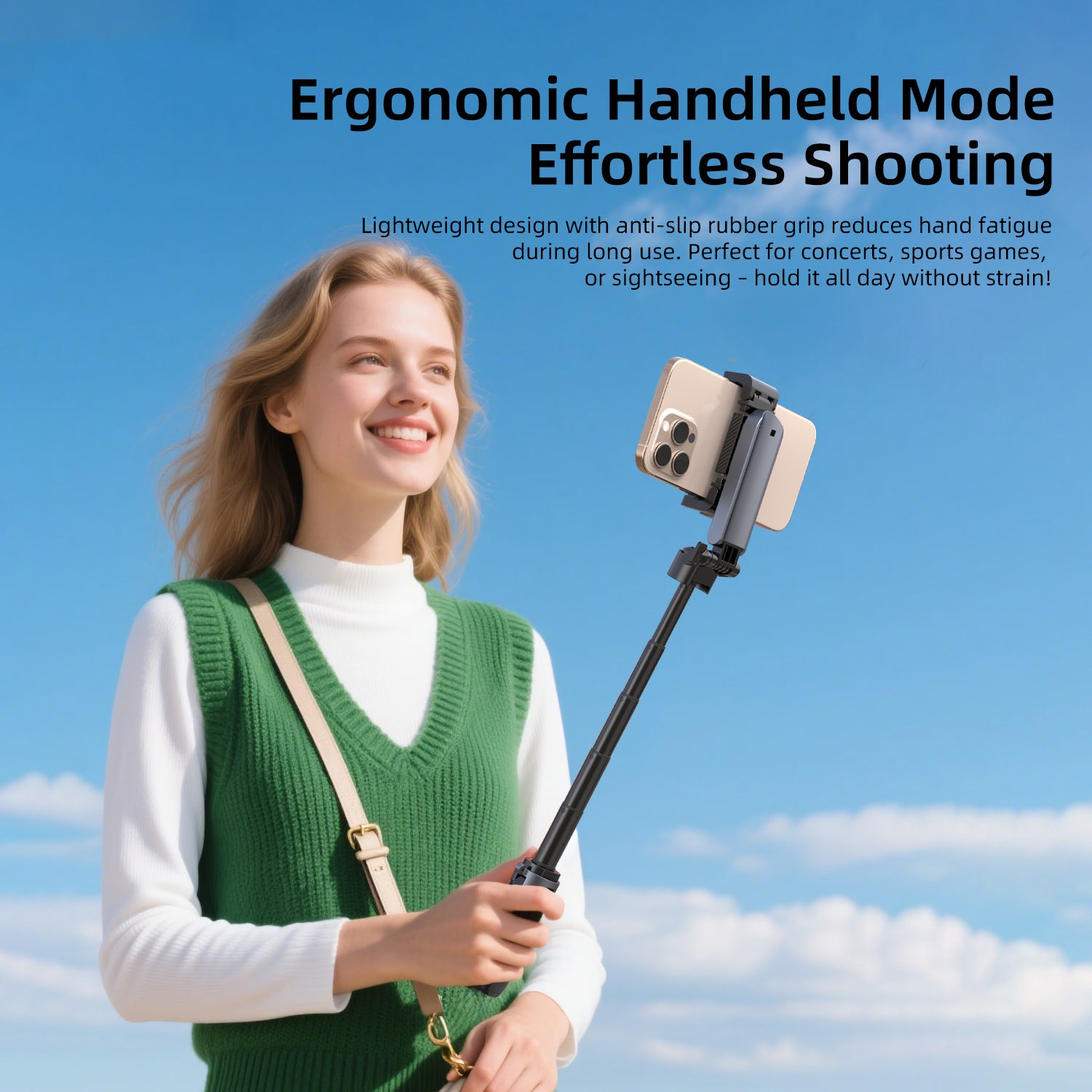 Ergonomic Handheld Mode Effortless Shooting: Lightweight design with anti-slip rubber grip reduces hand fatigue during long use. Perfect for concerts, sports games, or sightseeing - hold it all day without strain!