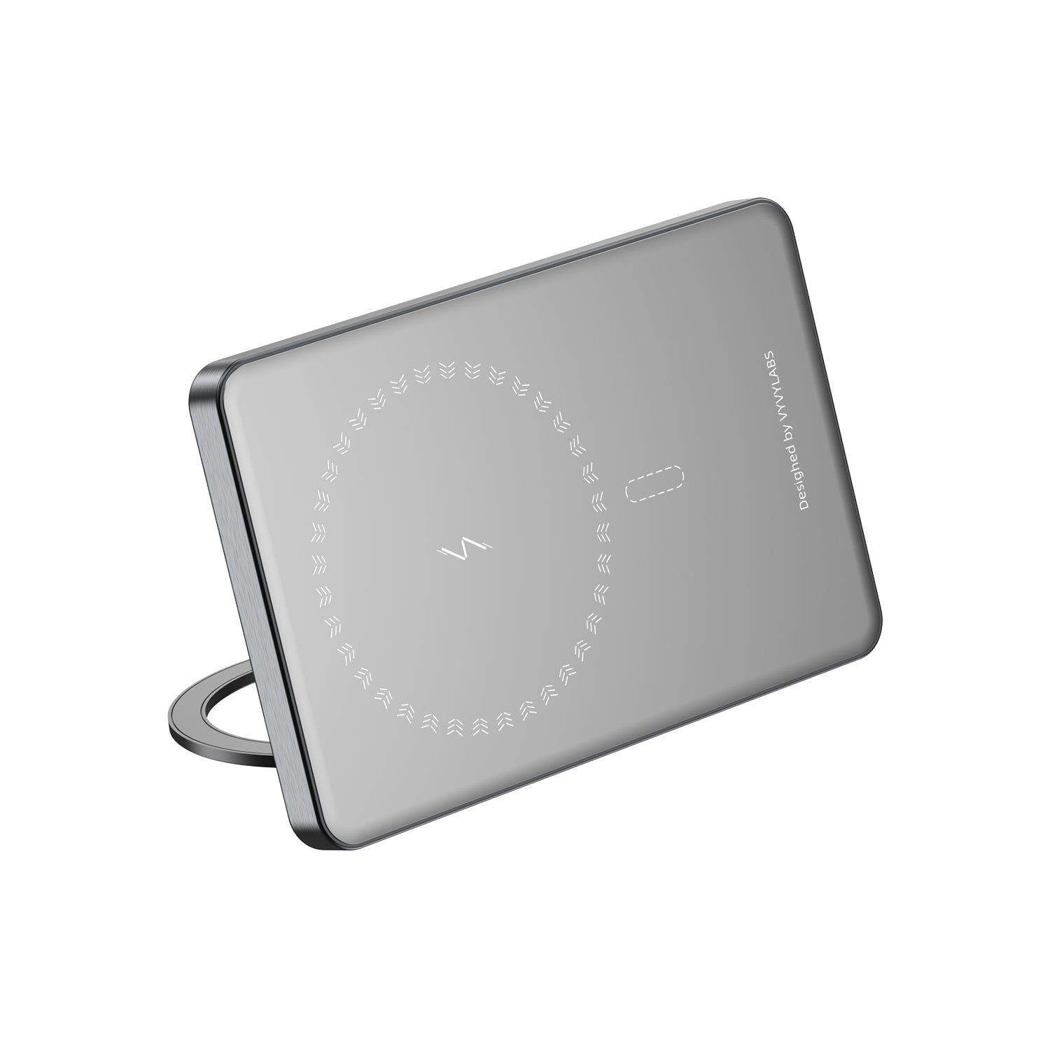 Super Mini Metal Magnetic Wireless Charger Power Bank 5000mAh 20W With Stand - Gray
