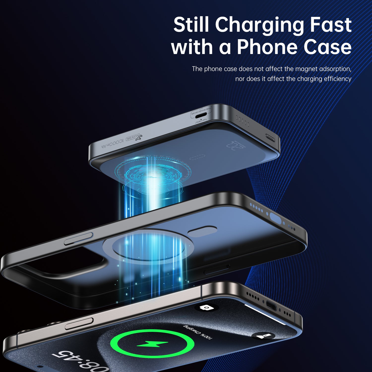 Designed for iPhone 12-16 Series: Magnetic Power Bank compatible with iPhone16/iPhone16 plus/iPhone16 Pro/iPhone16 Pro max/ iPhone15/iPhone15 plus/iPhone15 Pro/iPhone15 Pro max/iPhone 14/iPhone 14 Plus/iPhone14 Pro/iPhone 14 Pro Max/iPhone 13/iPhone 13 mini/iPhone 13 Pro/iPhone 13 Pro Max/iPhone 12/iPhone 12 mini/iPhone 12 Pro/iPhone 12 Pro Max (only compatible with cases with Mag-Safe certified cases or without cases). Up to 22.5W USB-A PD output and up to 20W USB-C output; supports up to 18W Lighting input and up to 18w USB-C input.
