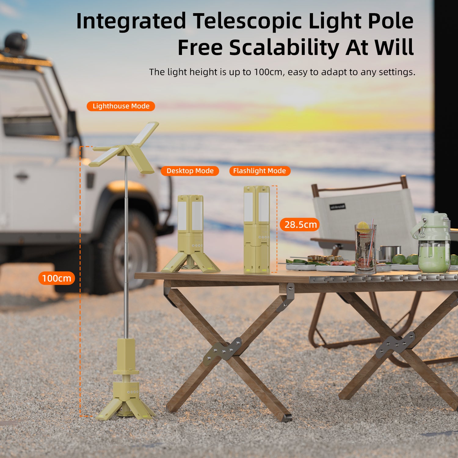 Stylish & Durable: With a sleek design, robust ABS construction, and IPX5 waterproof rating, the compact folding design saves space and provides wide-area lighting. A perfect camping gift for yourself or loved ones.Integrated Telescopic Light PoleFree Scalability At WillThe light height is up to 100cm, easy to adapt to any settings.