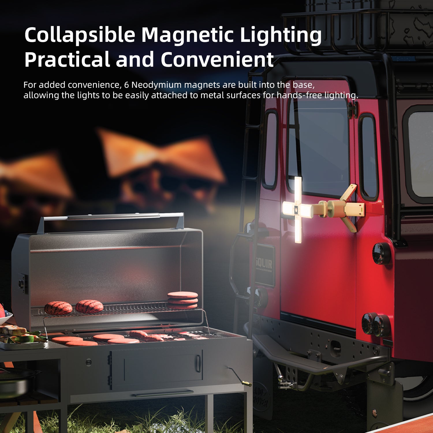 Collapsible Magnetic Lighting: Practical and ConvenientFor added convenience, 6 Neodymium magnets are built into the base, allowing the lights to be easily attached to metal surfaces for hands-free lighting.