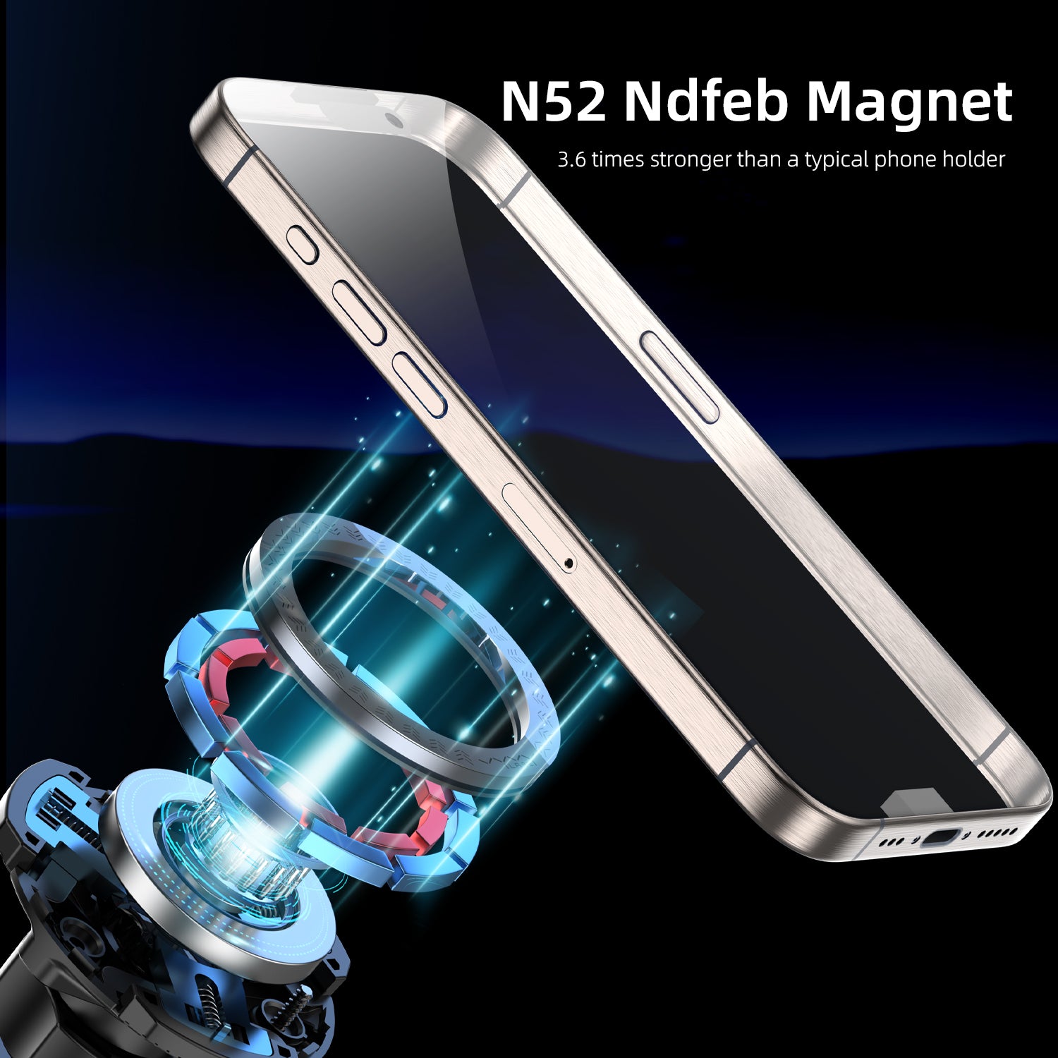 Magnetic Car Suction Cup Holder : This Suction Cup Holder use of 32 N52 rubidium magnets, that provides superior magnetic strength and enhances the stability of the mount, keeping your phone securely attached even when braking sharply or driving over bumpy roads, ensuring during driving.