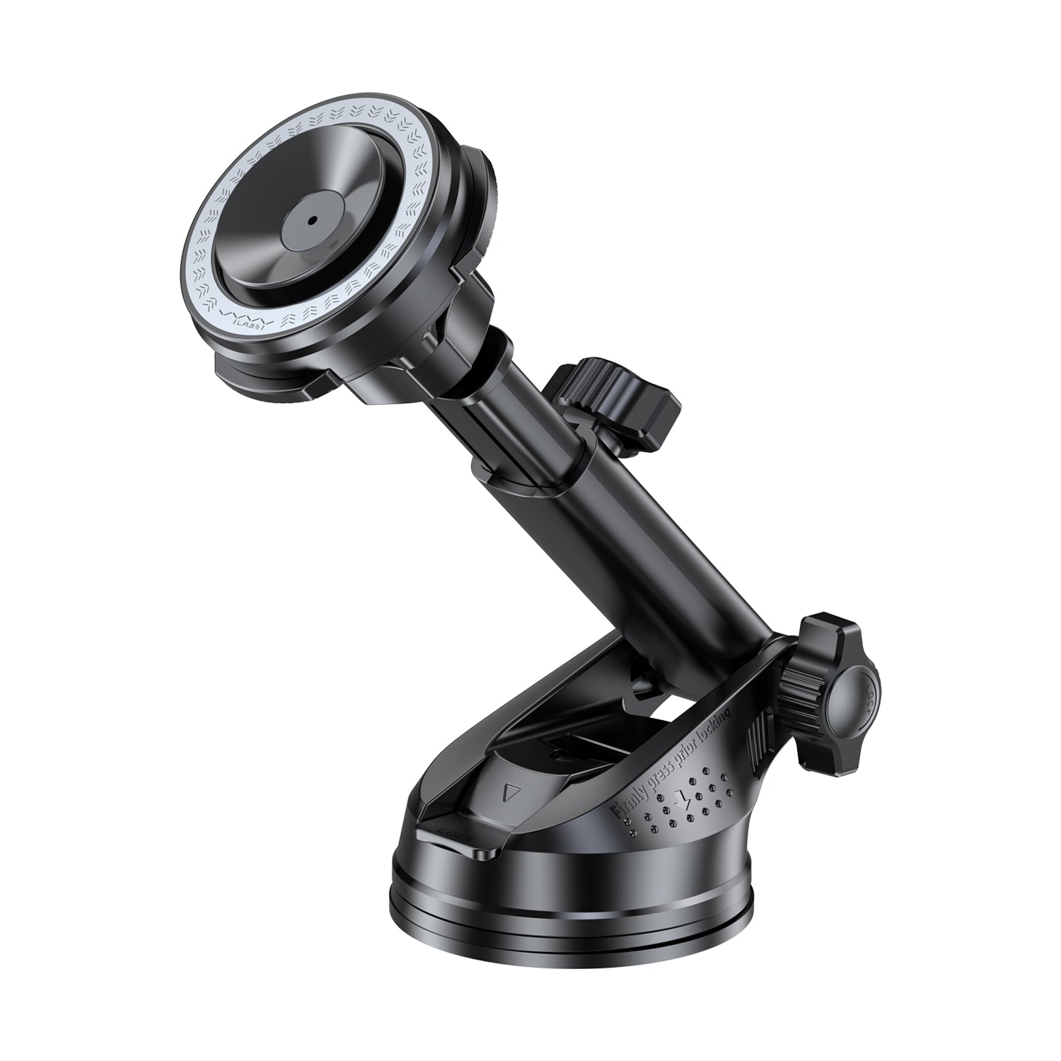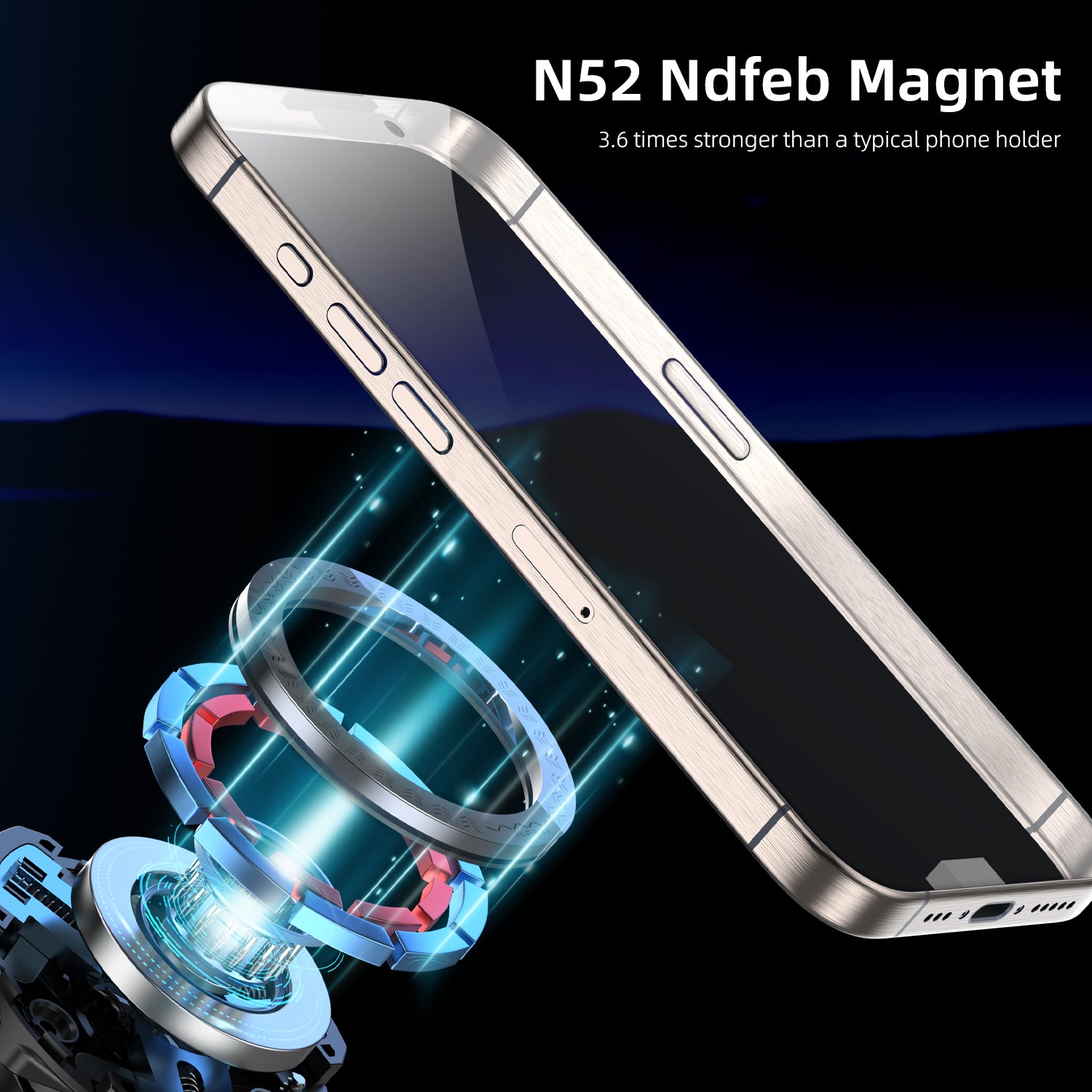 Materials : Advanced Vacuum Suction Cup The strong vacuum suction ability keeps the mobile phone in a safe state during driving, and unlock with one tap. N52 Ndfeb Magnet 3.6 times stronger than a typical phone holder. Clack! The Phone is Fixed