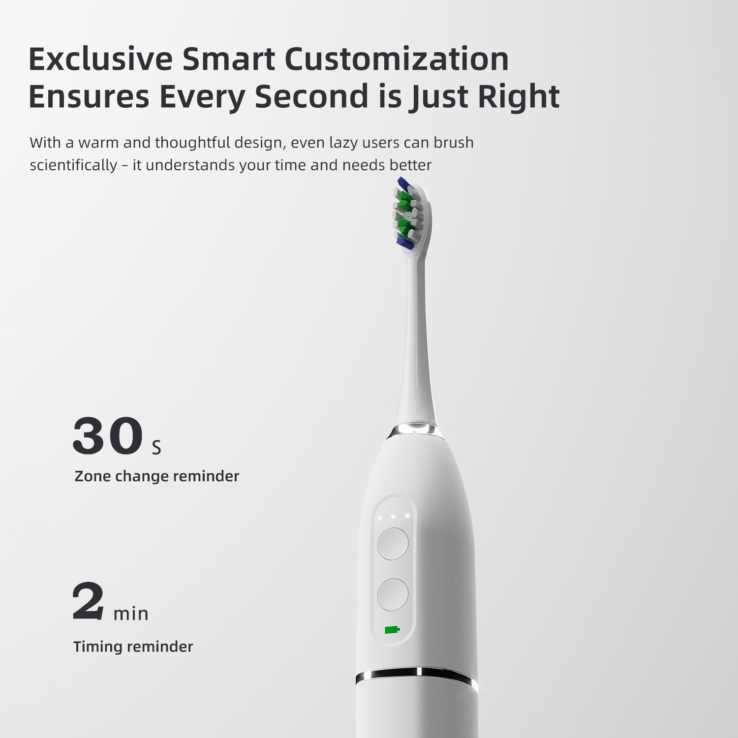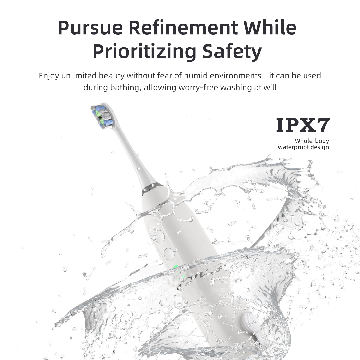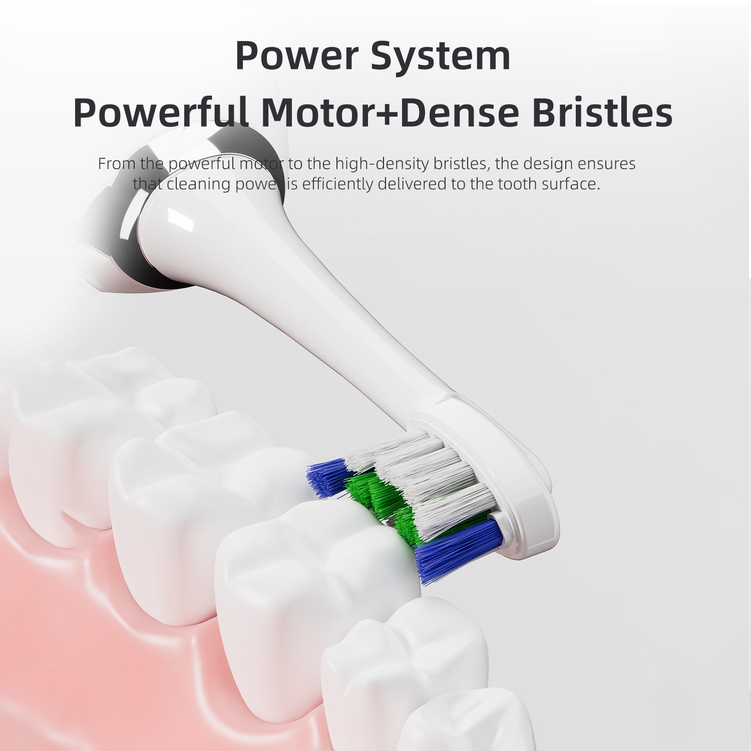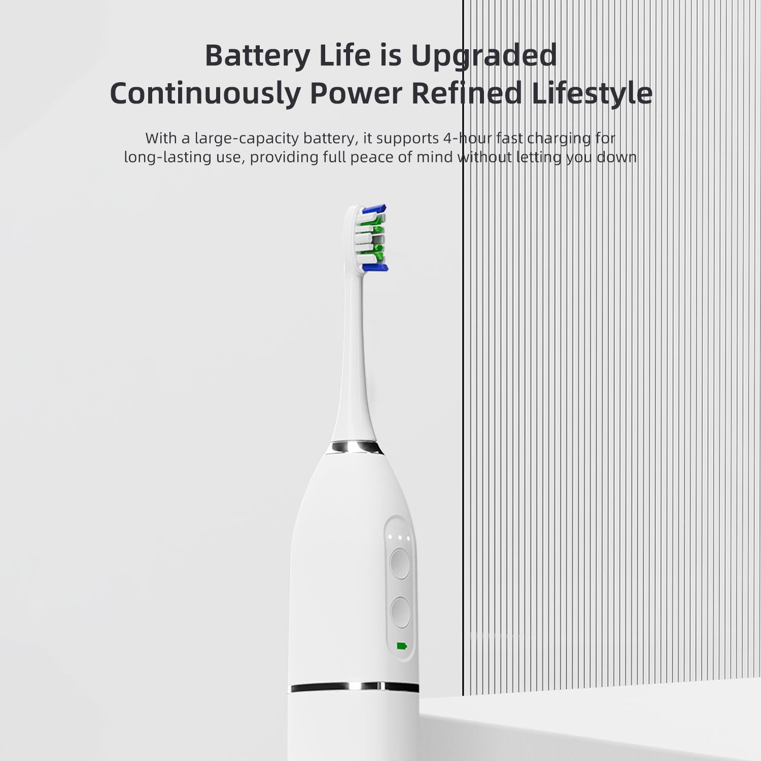 With a vibration frequency of 31000-36000 strokes per minute, the sonic toothbrush delivers superior cleaning performance. It features upgraded Dupont bristles, designed to enhance brushing efficiency and care for your teeth and gums. The device offers multiple