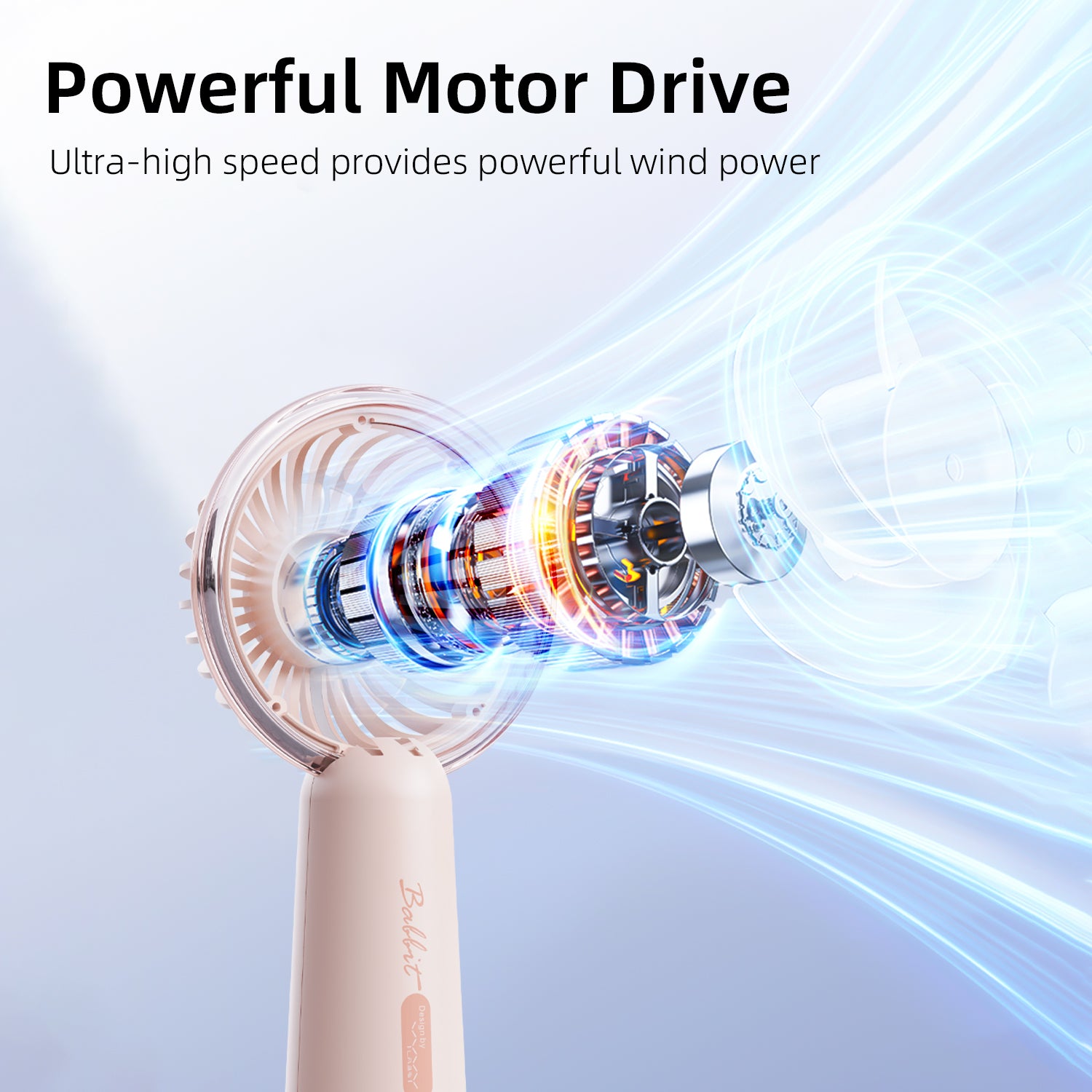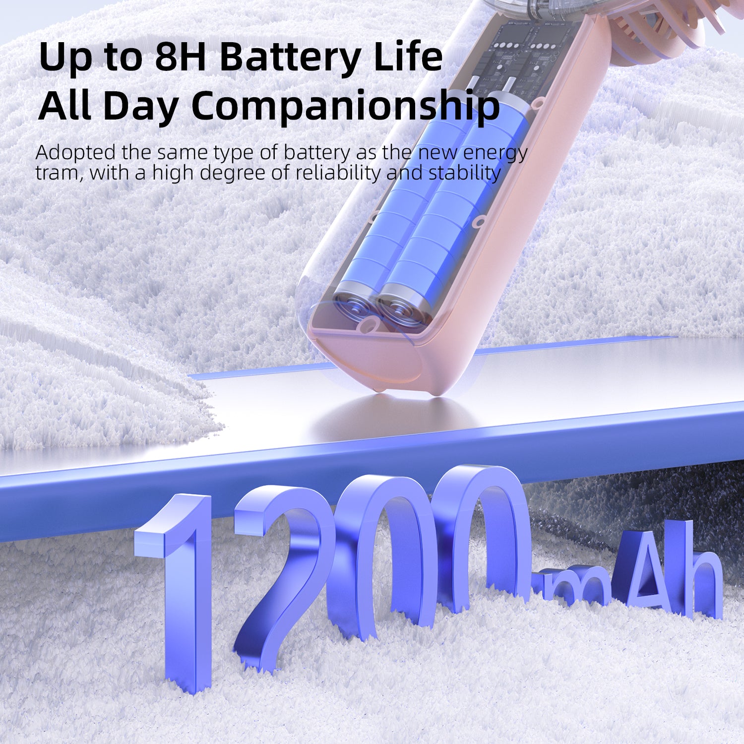 Practical Hand Fan Battery Powered: Built-in 1200mAh rechargeable lithium battery, 4 adjustable speeds, fully charges in 2 hours, wireless working time 2 hours. Adjustable head supports ±15 degree angle adjustment to satisfy different demands. An extra removable base can also be a cell phone holder, convenient to use on the desk. The lanyard design frees your hands and perfect for traveling.