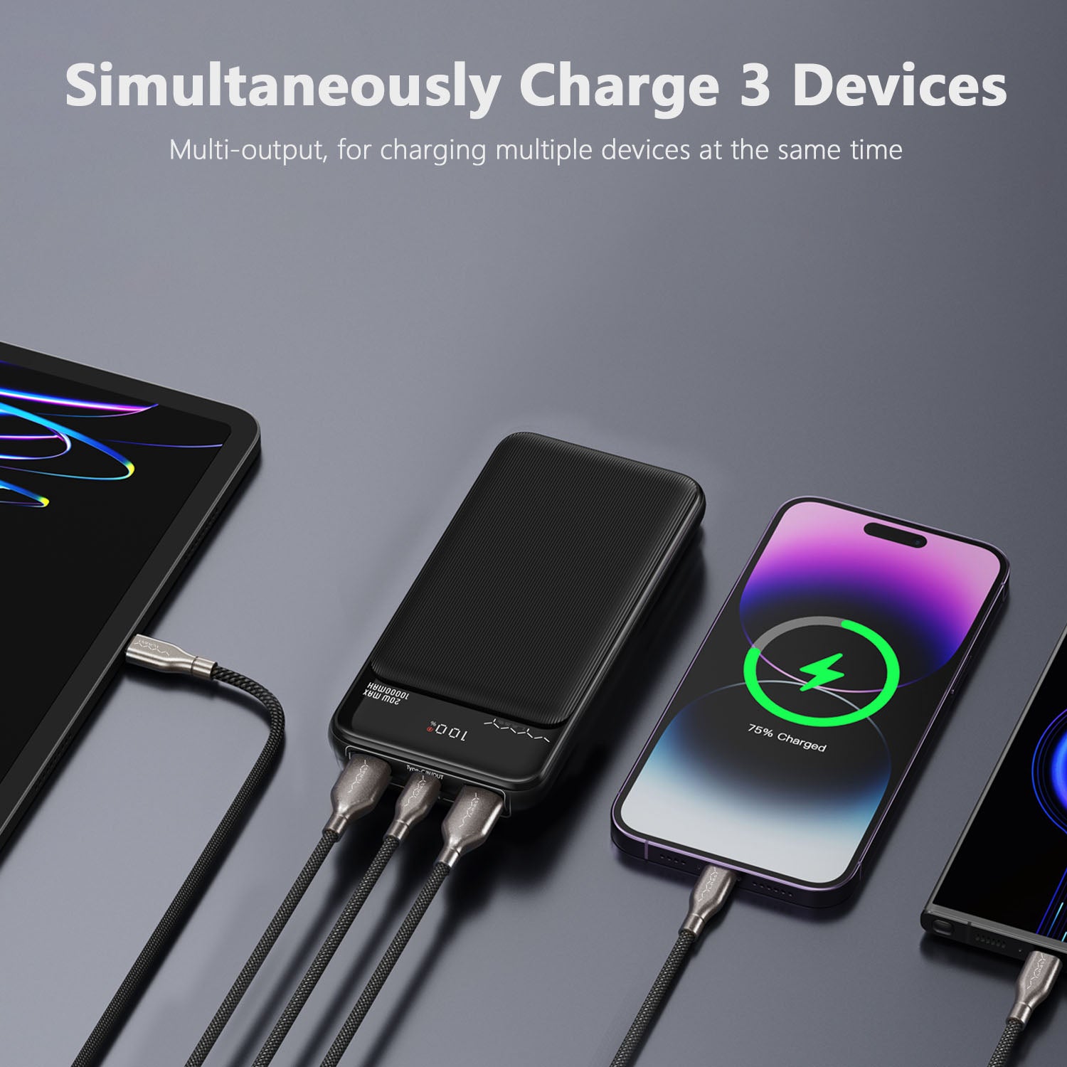 Multiple Output Ports: With Type-C and two USB-A output ports, each capable of delivering up to 20W, you can charge multiple devices simultaneously without compromising on speed.