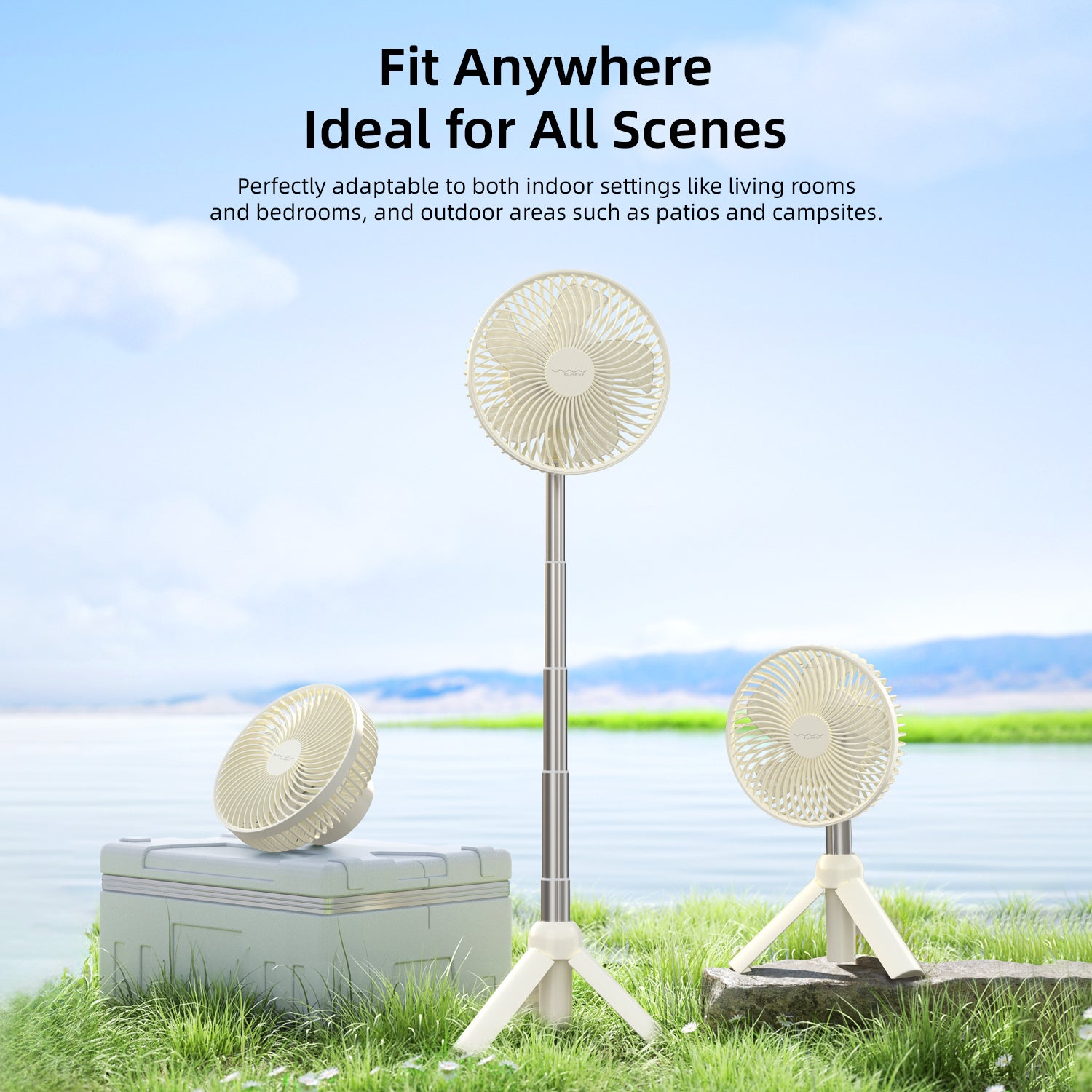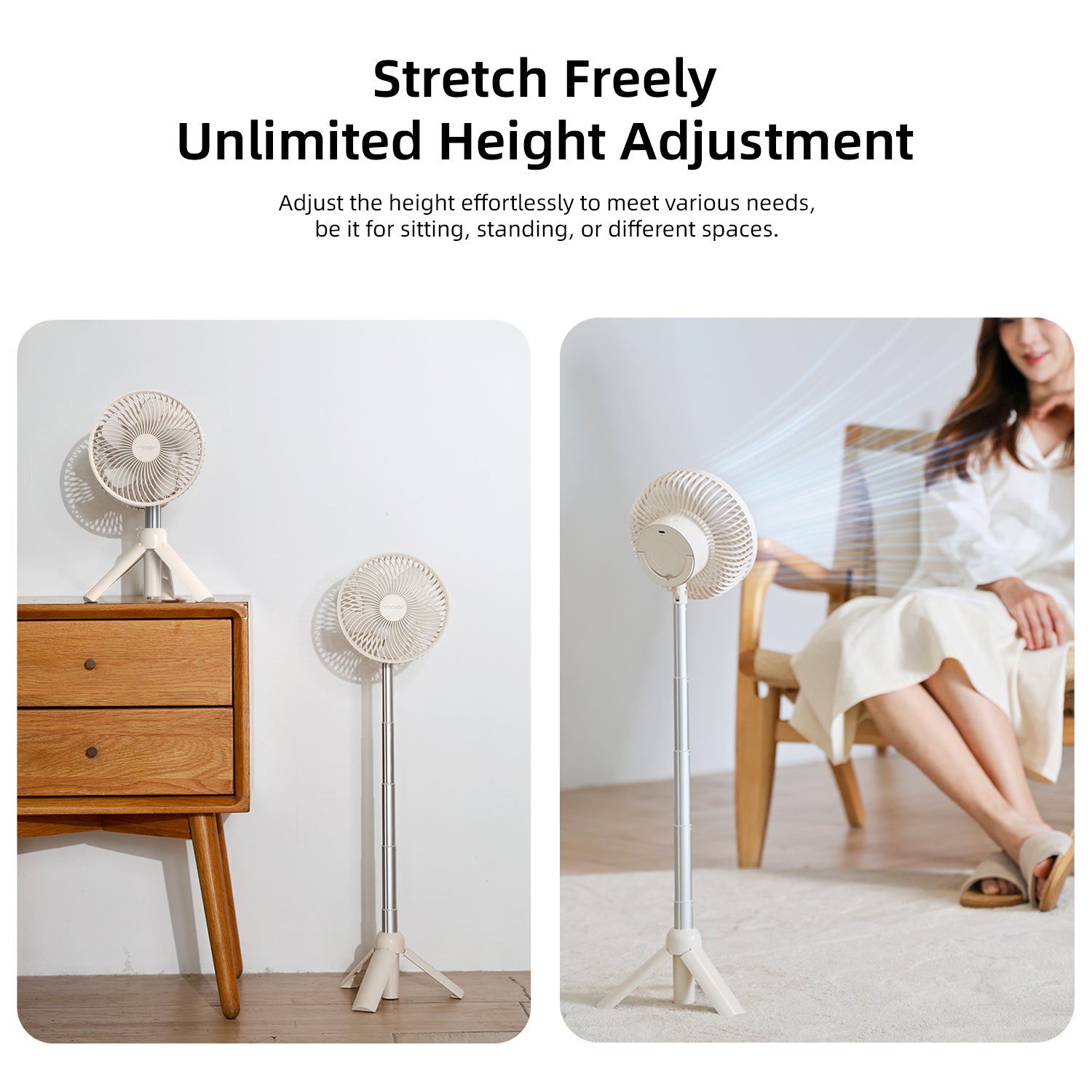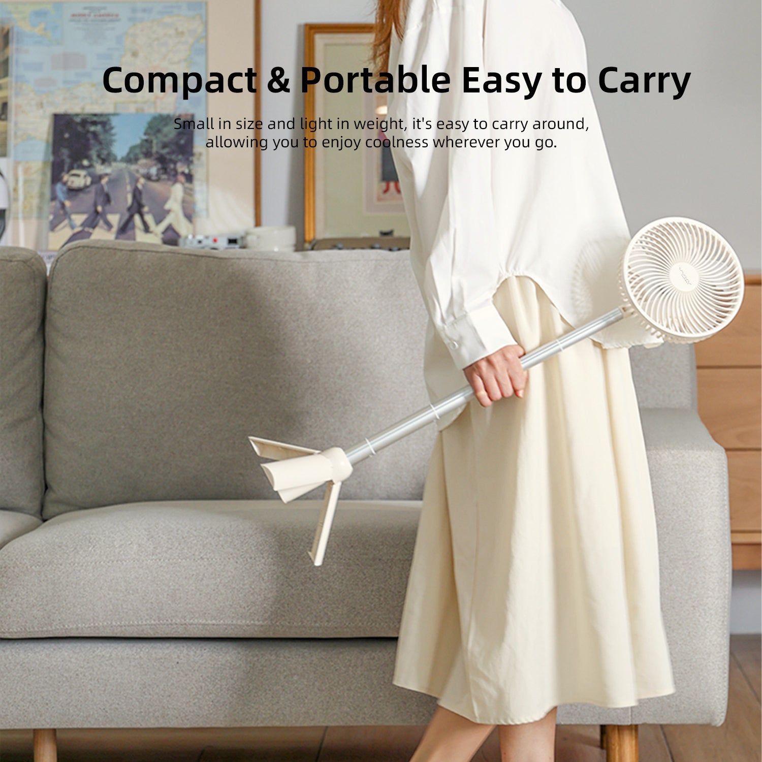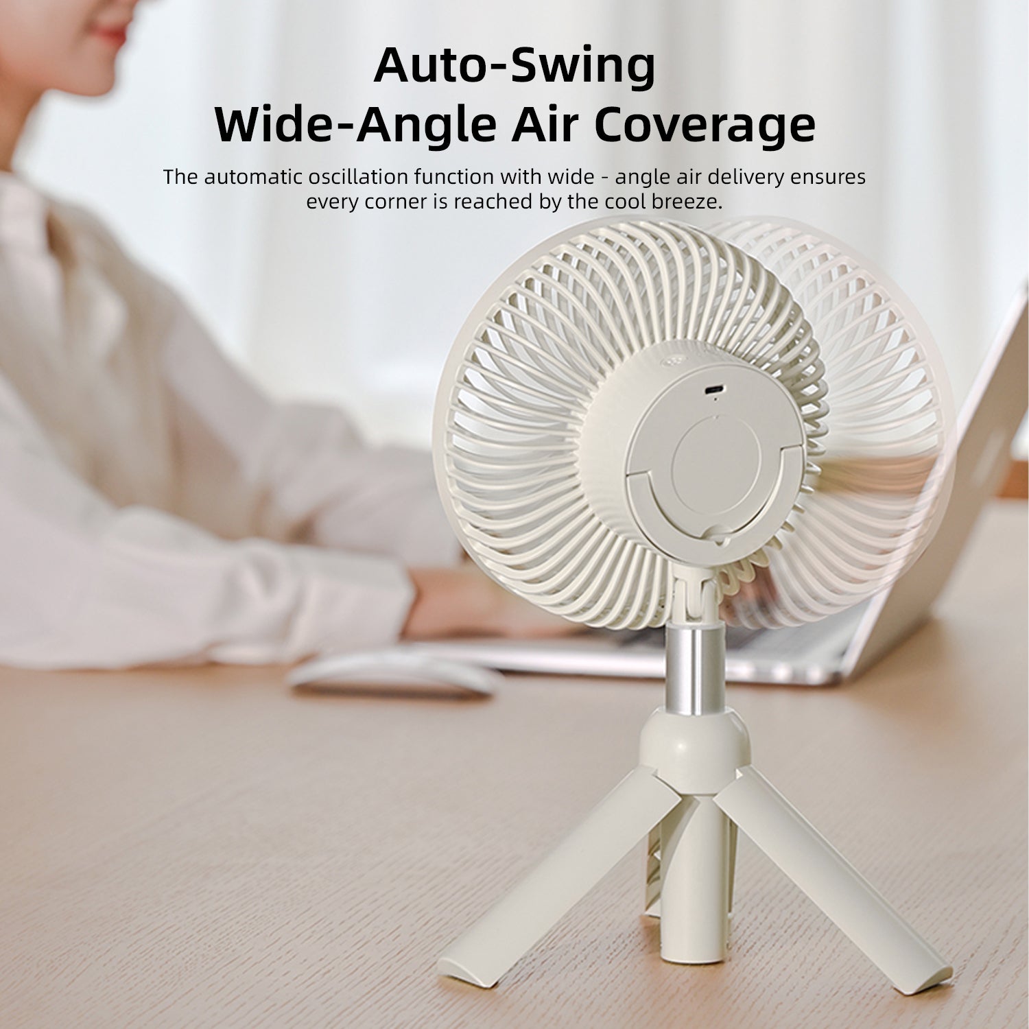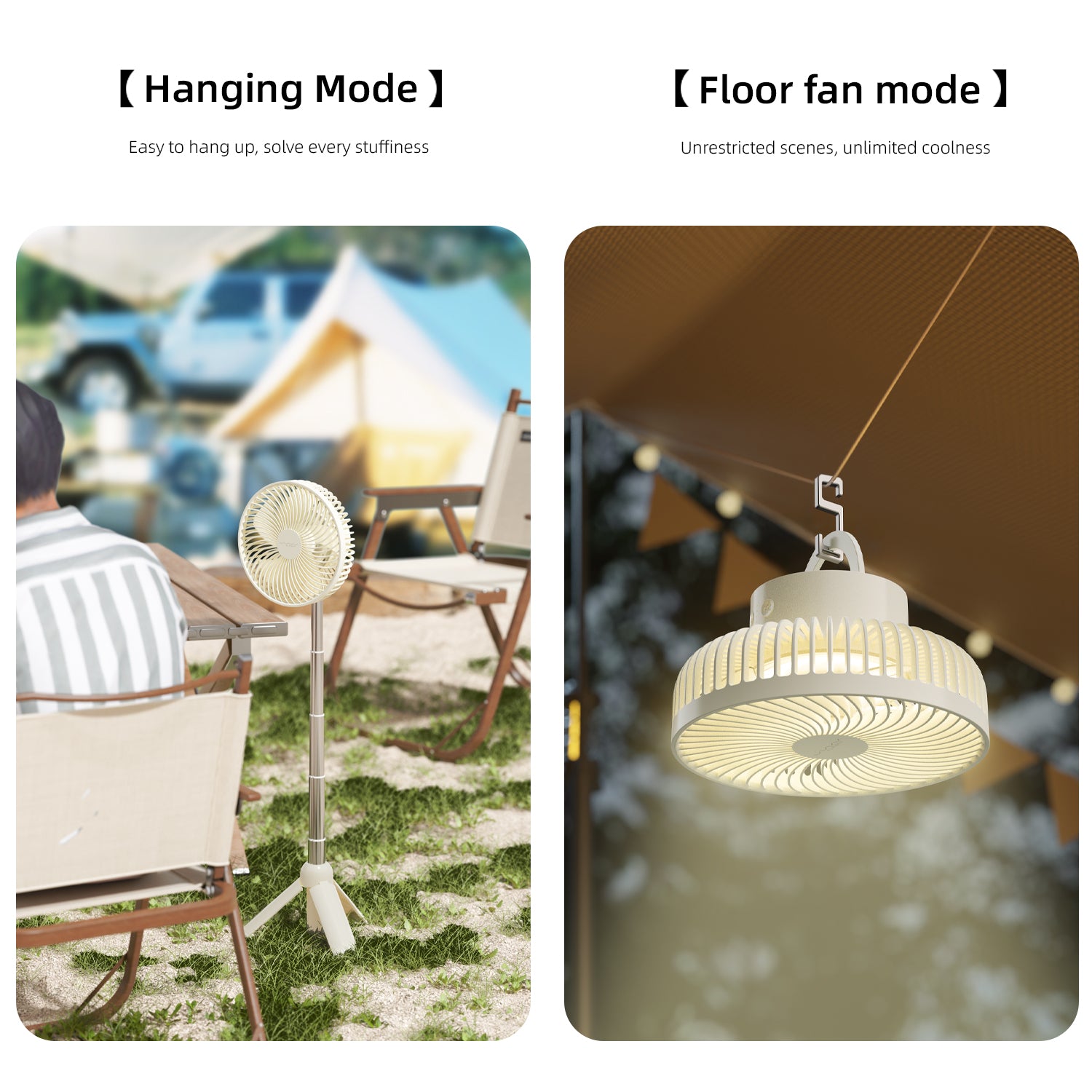 5 in 1 Multifunctional 5000 Capacity Fan: Vyvylabs 5 in 1 Desk Fan With its unique design and functions, it can be a desk fan, camping fan, floor fan or oscillating fan. It is a desktop fan and floor fan for offices, homes, study rooms, and bedrooms. A ceiling fan that can be hung on a bed, tent, or branch. It is a camping fan suitable for hiking and fishing. Can also be used as an indoor and outdoor emergency light. Such a practical and multi-functional battery fan.