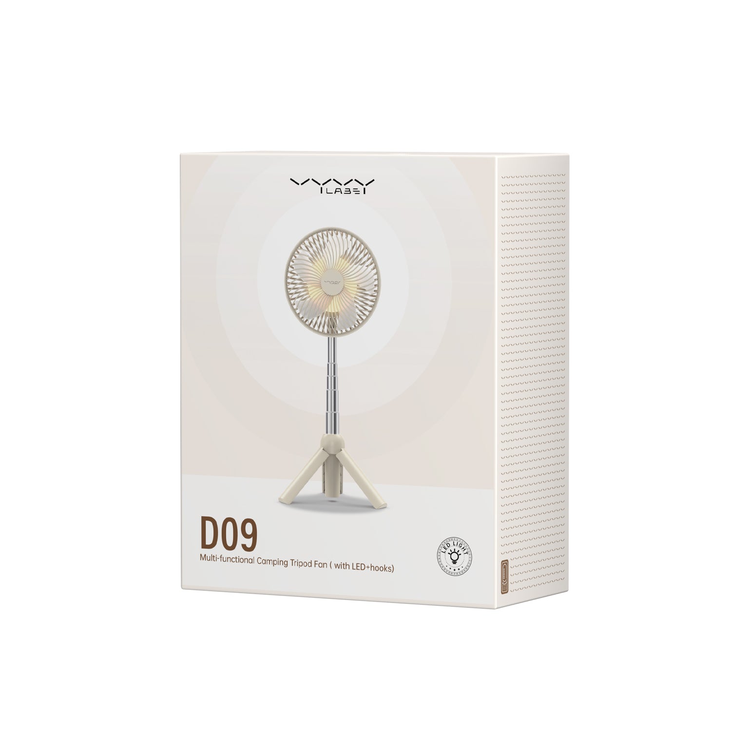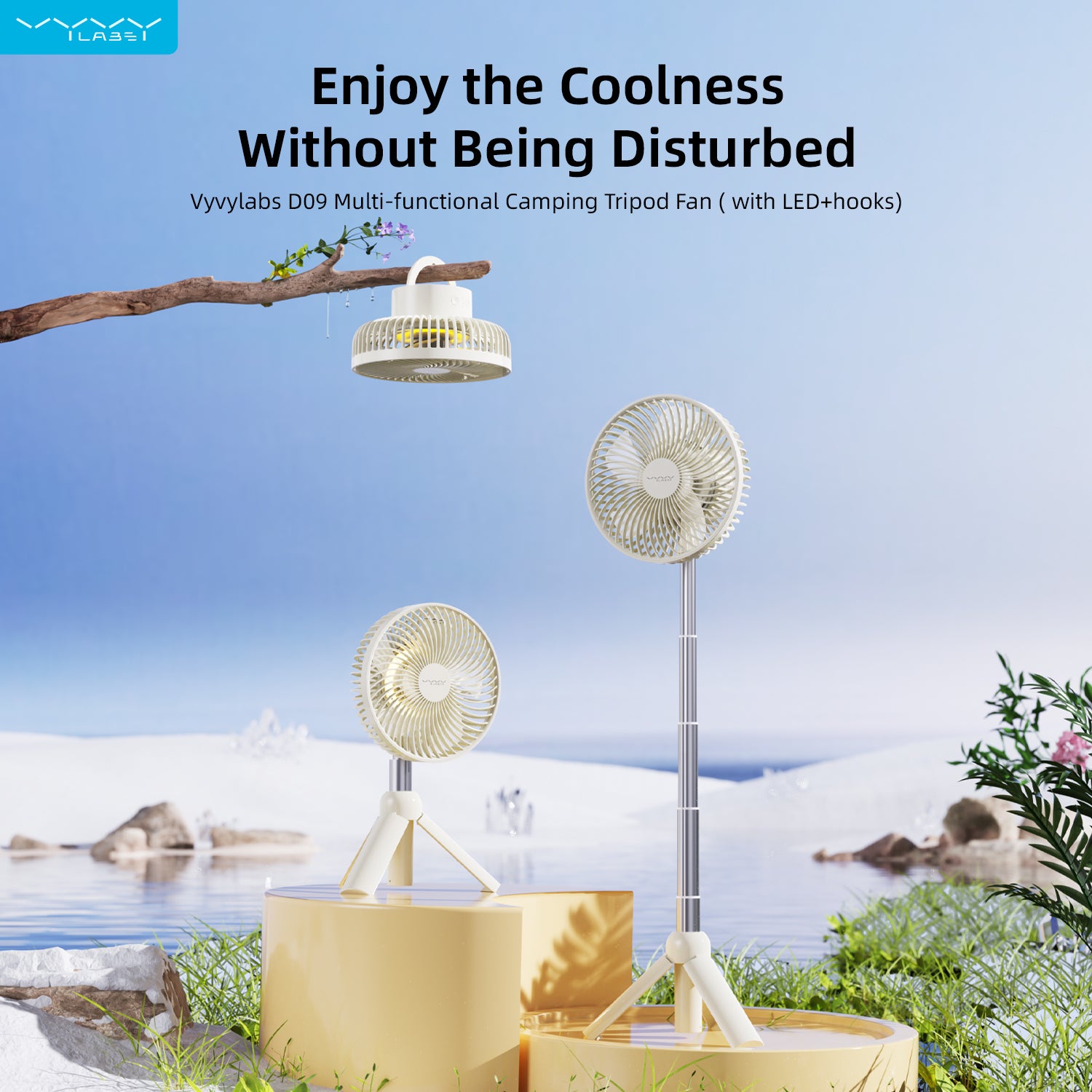 Vyvylabs D09 Multi-functional Camping Tripod Fan with LED & Hooks