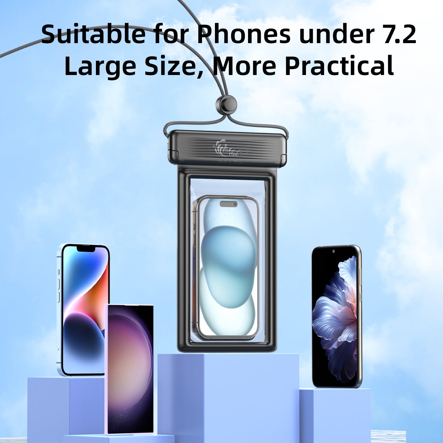Larger Space for Bigger Phones: With upgraded space, this universal size dry phone case is fit for big phones and phone cases, 7.2 inches in max. It is compatible with iphone 12/13/14 pro max, galaxy s21/s22/s23 ultra, galaxy A13/A14, and most phones from other brands.