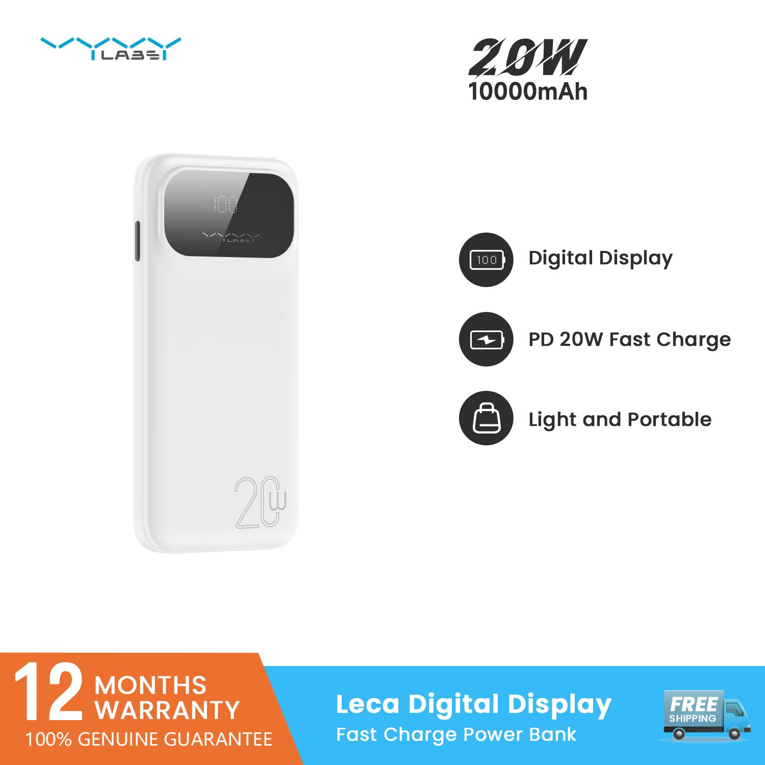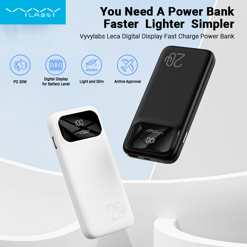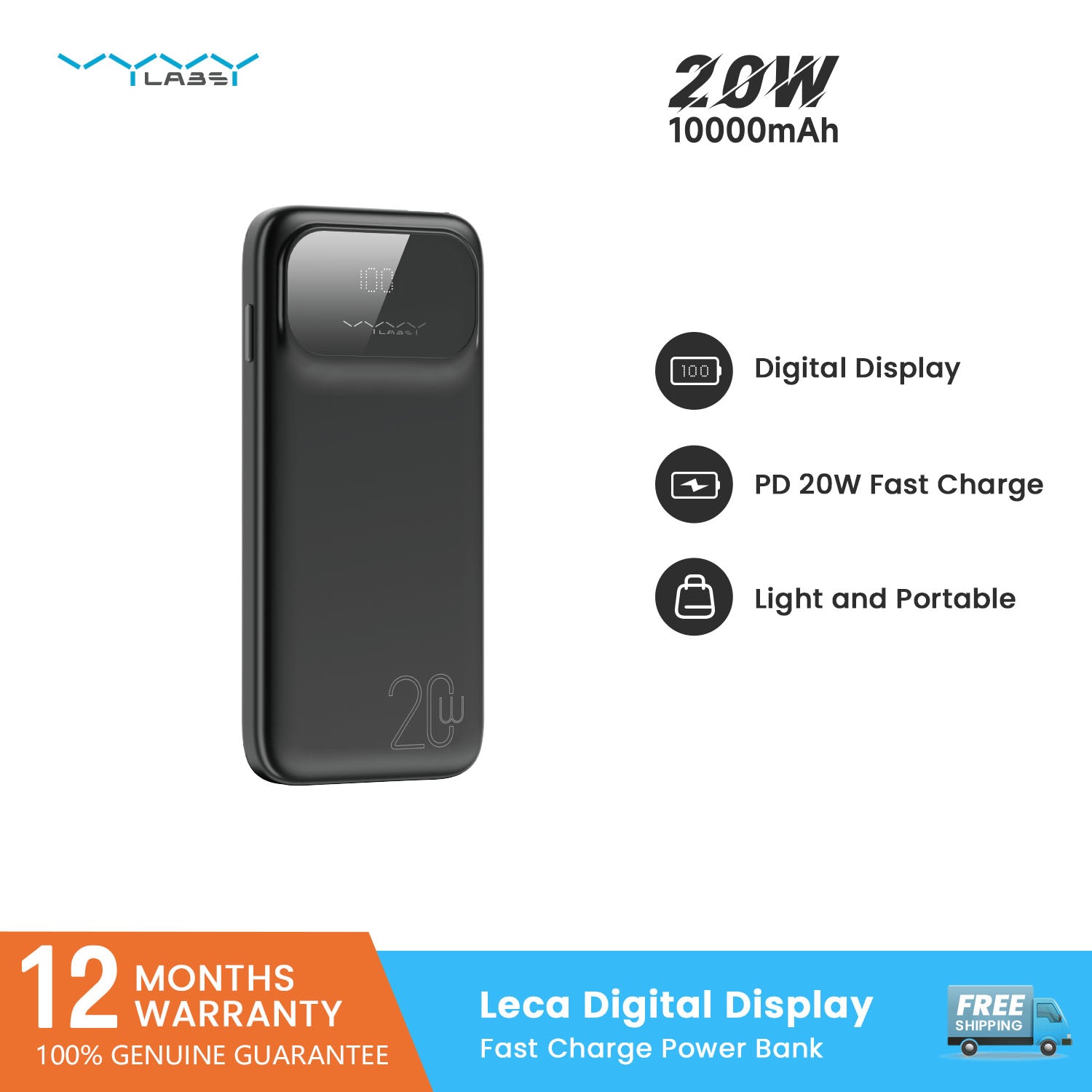 Vyvylabs Leca Digital Display Fast Charge Power Bank 10000mAh 20W - Black