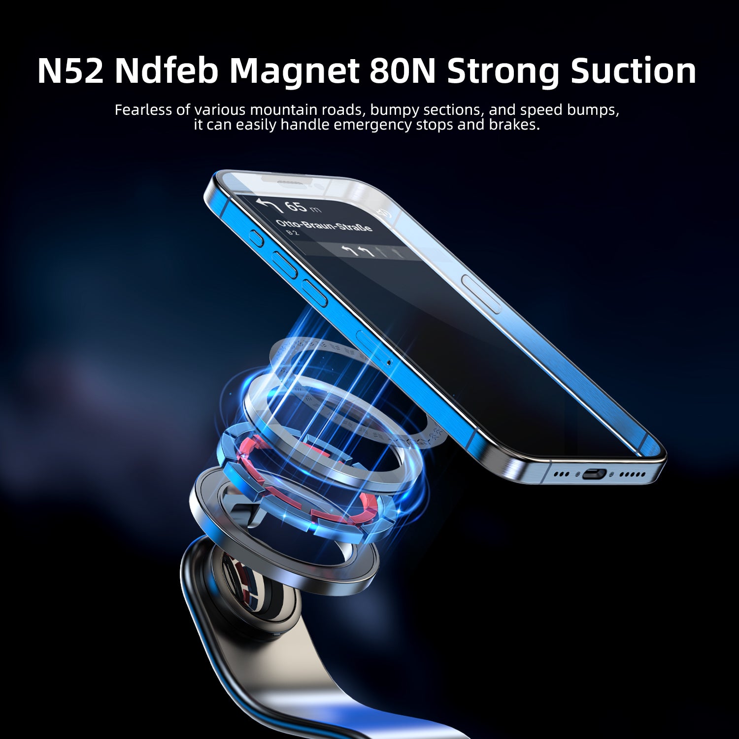 It features a strong magnetic structure that ensures phone stability even on rough roads.