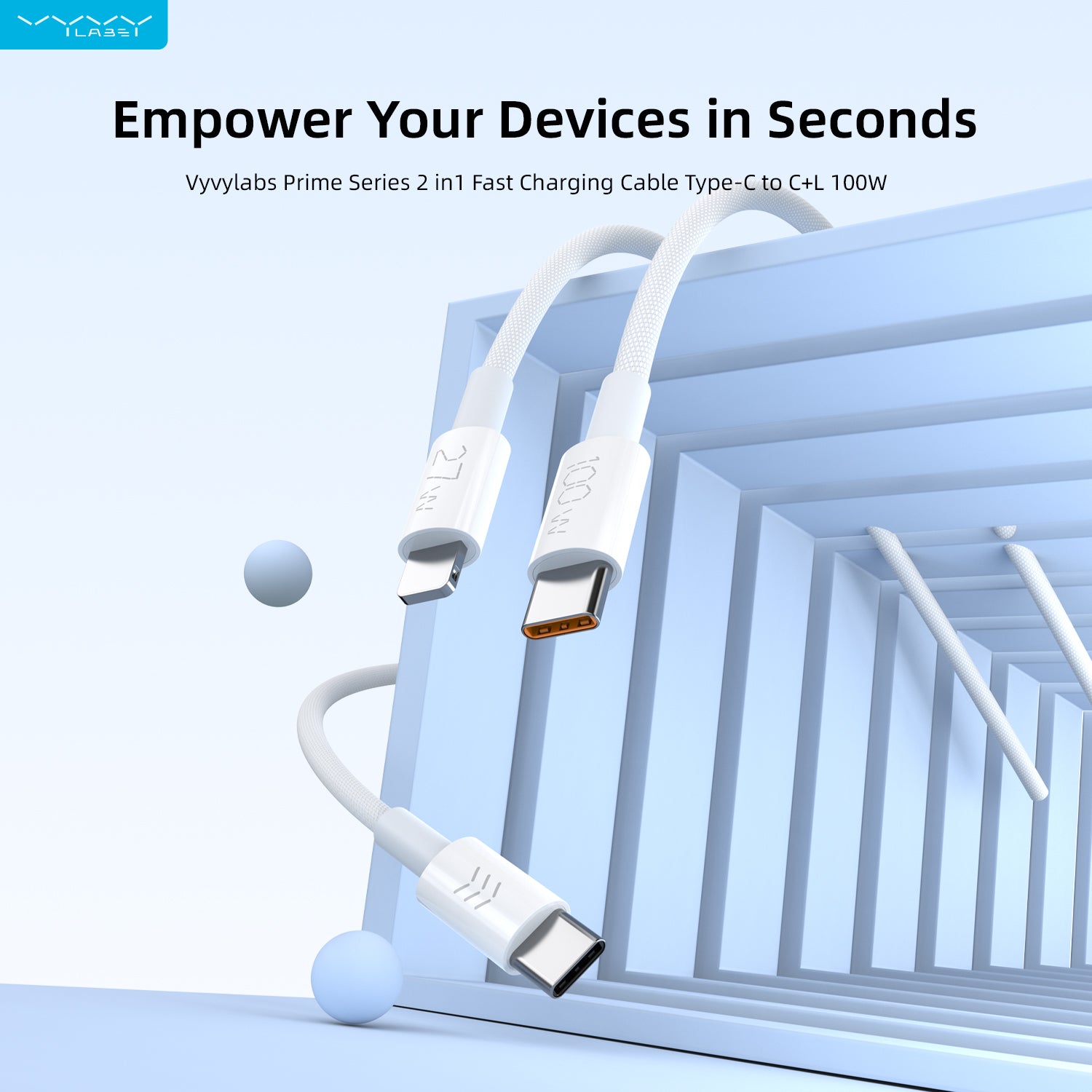 Vyvylabs Prime Series 2 in1 Fast Charging Cable Type-C to C+L 100W 1.5M White