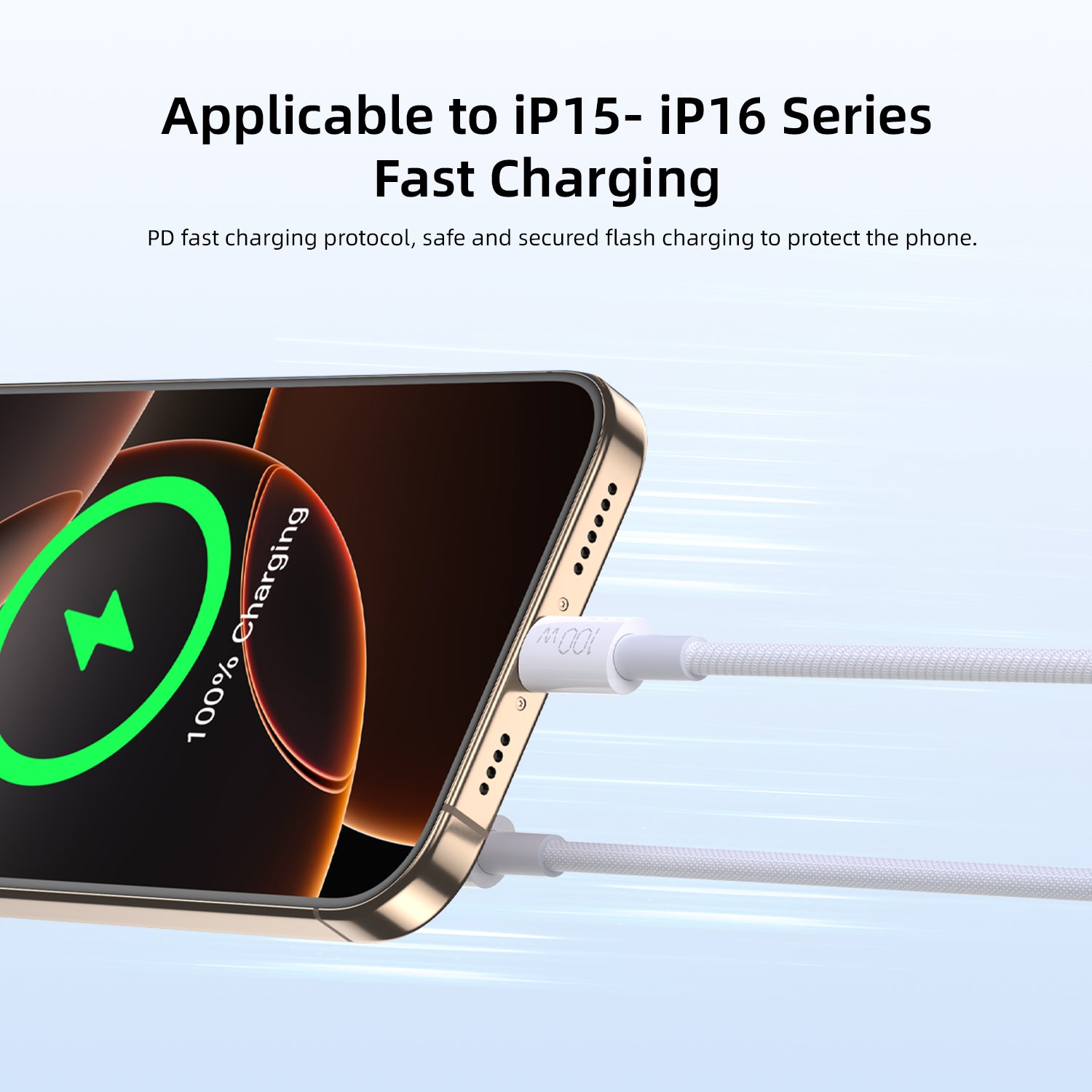 (100W max), engineered from advanced 80% thicker Super Conductivity copper wires achieves lower resistance, gives your Phone 15 & 16 series a whopping 50% battery in just 30 minutes.