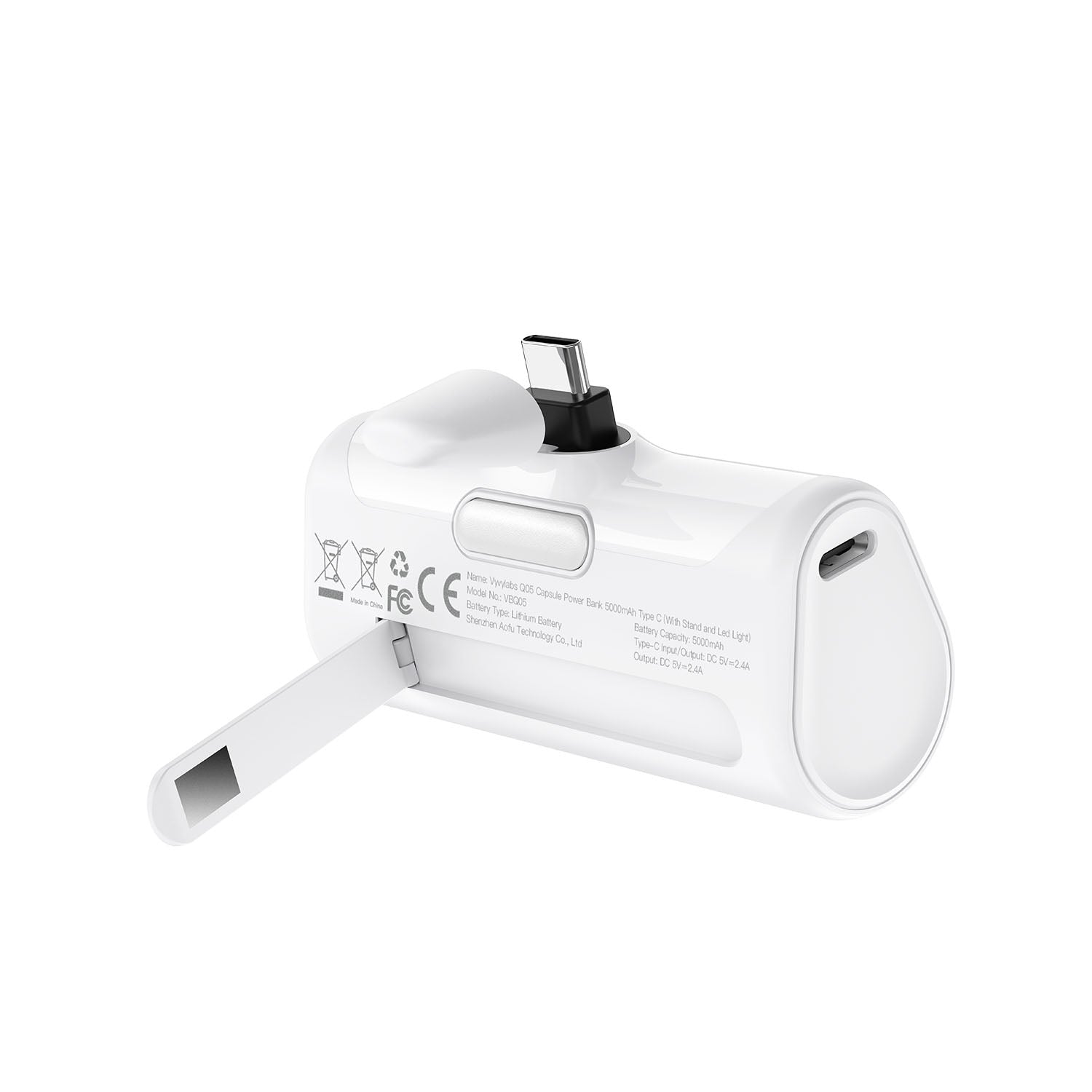 Vyvylabs Q05 Capsule Power Bank 5000mAh (With Stand and Led light)- White