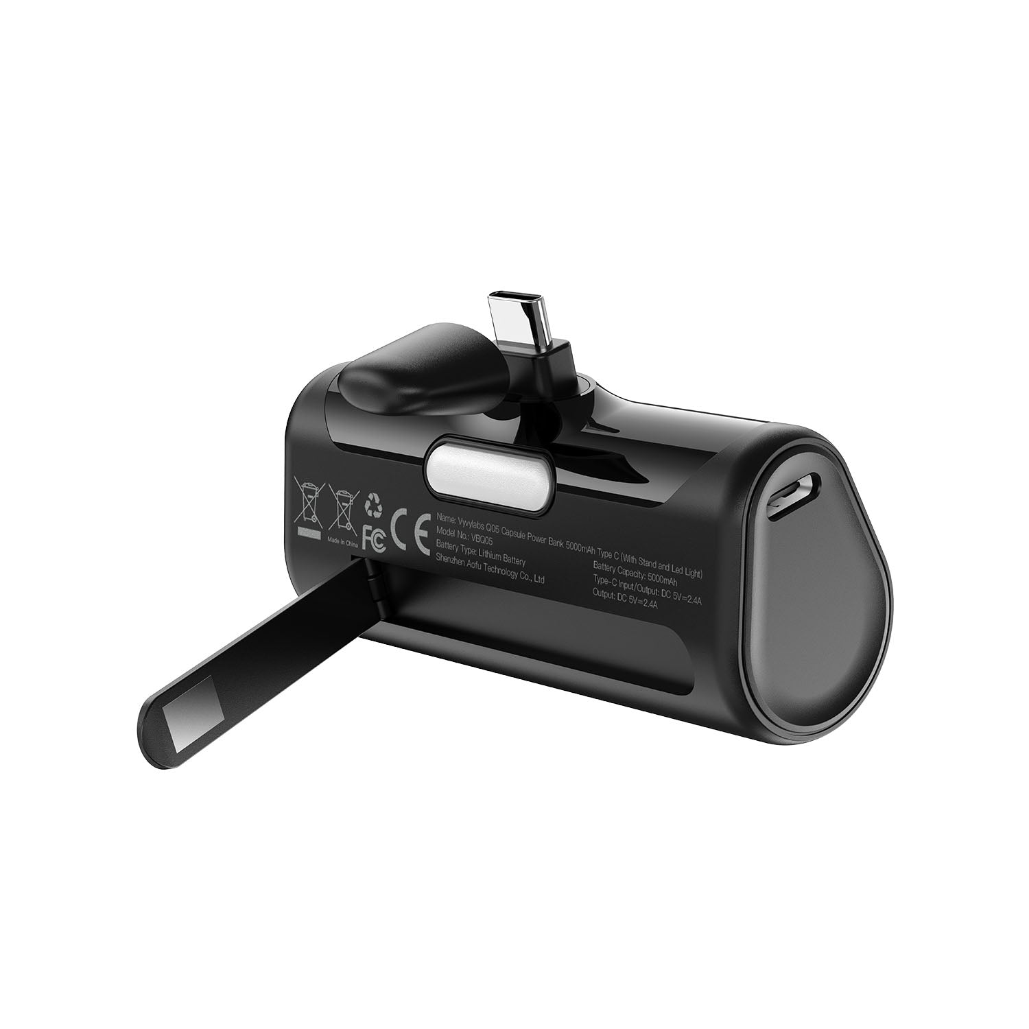 Vyvylabs Q05 Capsule Power Bank 5000mAh Type C (With Stand and Led light) Black