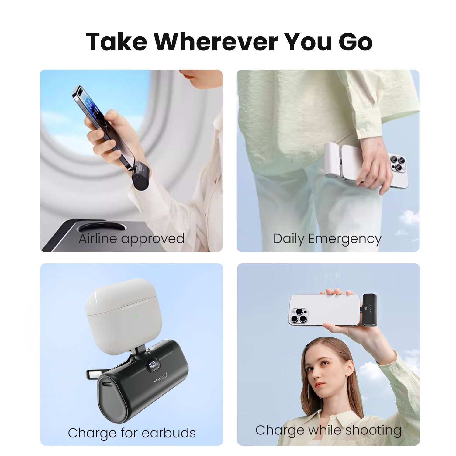 Vyvylabs Q05 Capsule Power Bank 5000mAh Type C (With Stand and Led light) Black
