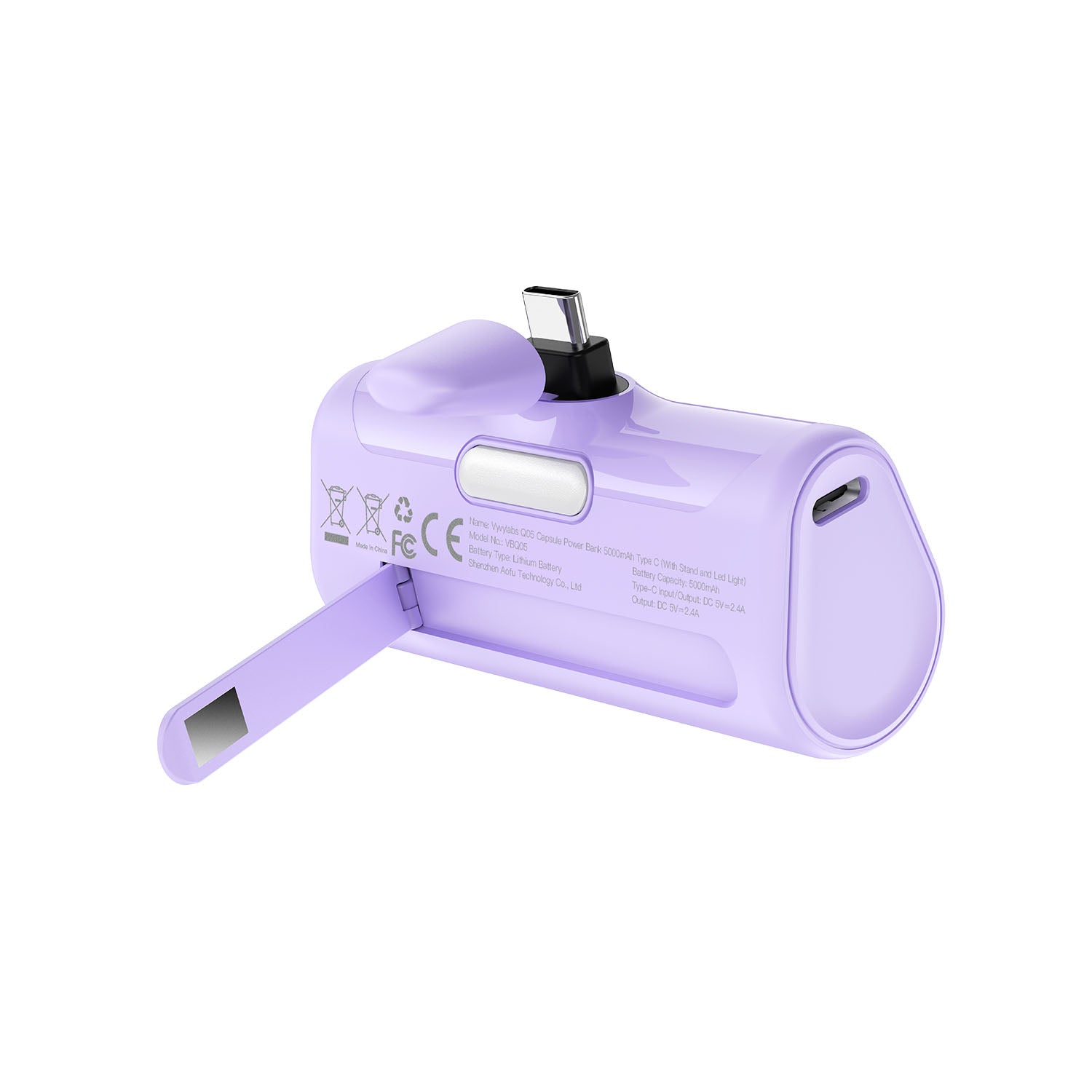 Vyvylabs Q05 Capsule Power Bank 5000mAh (With Stand and Led light)- purple