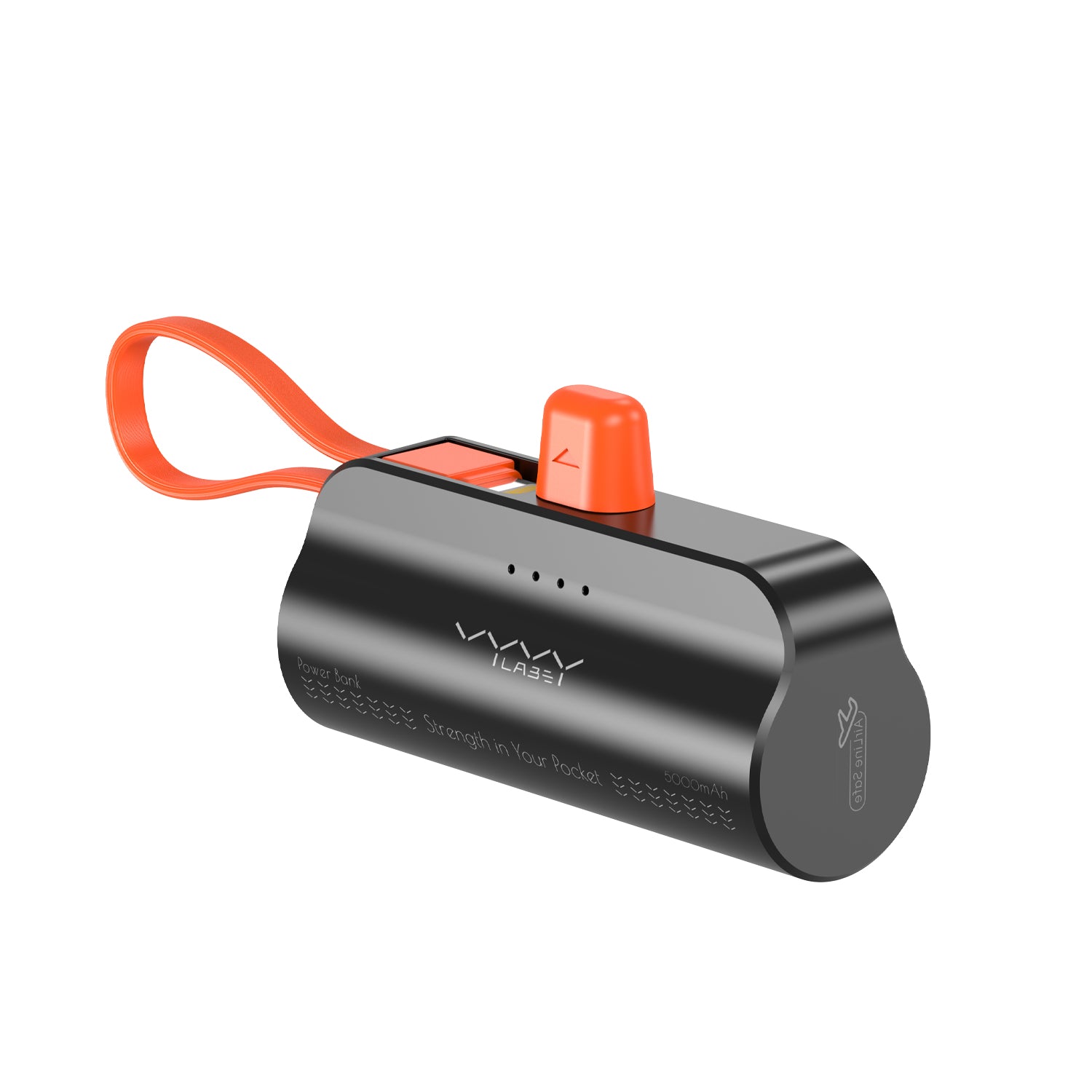 Vyvylabs Q12 Capsule Power Bank 5000mAh Type-C With iP Cable and Stand - Black