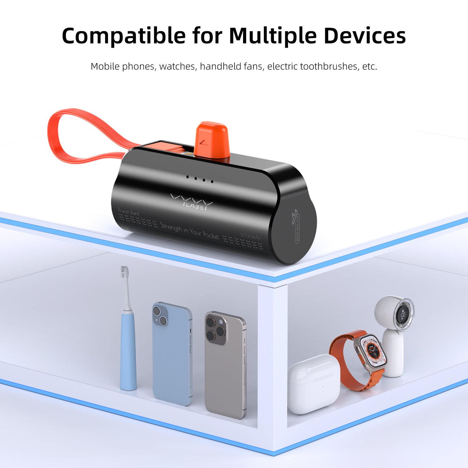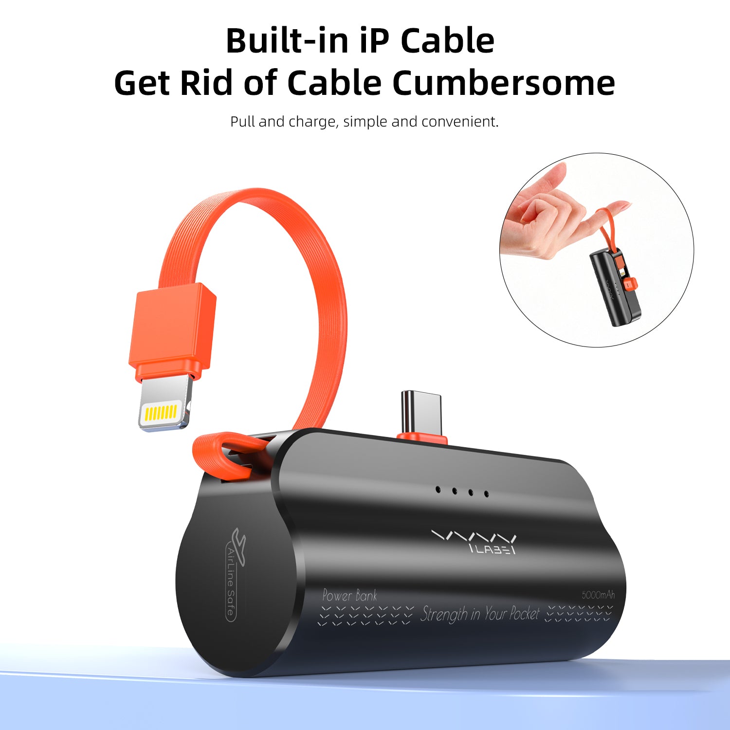 Built-In Lightning Cable for Clutter-Free Experience: Say goodbye to cable clutter with Vyvylabs's built-in Lightning cable. This convenient feature eliminates the need for carrying additional cables, ensuring you have everything you need for charging your devices in one compact package