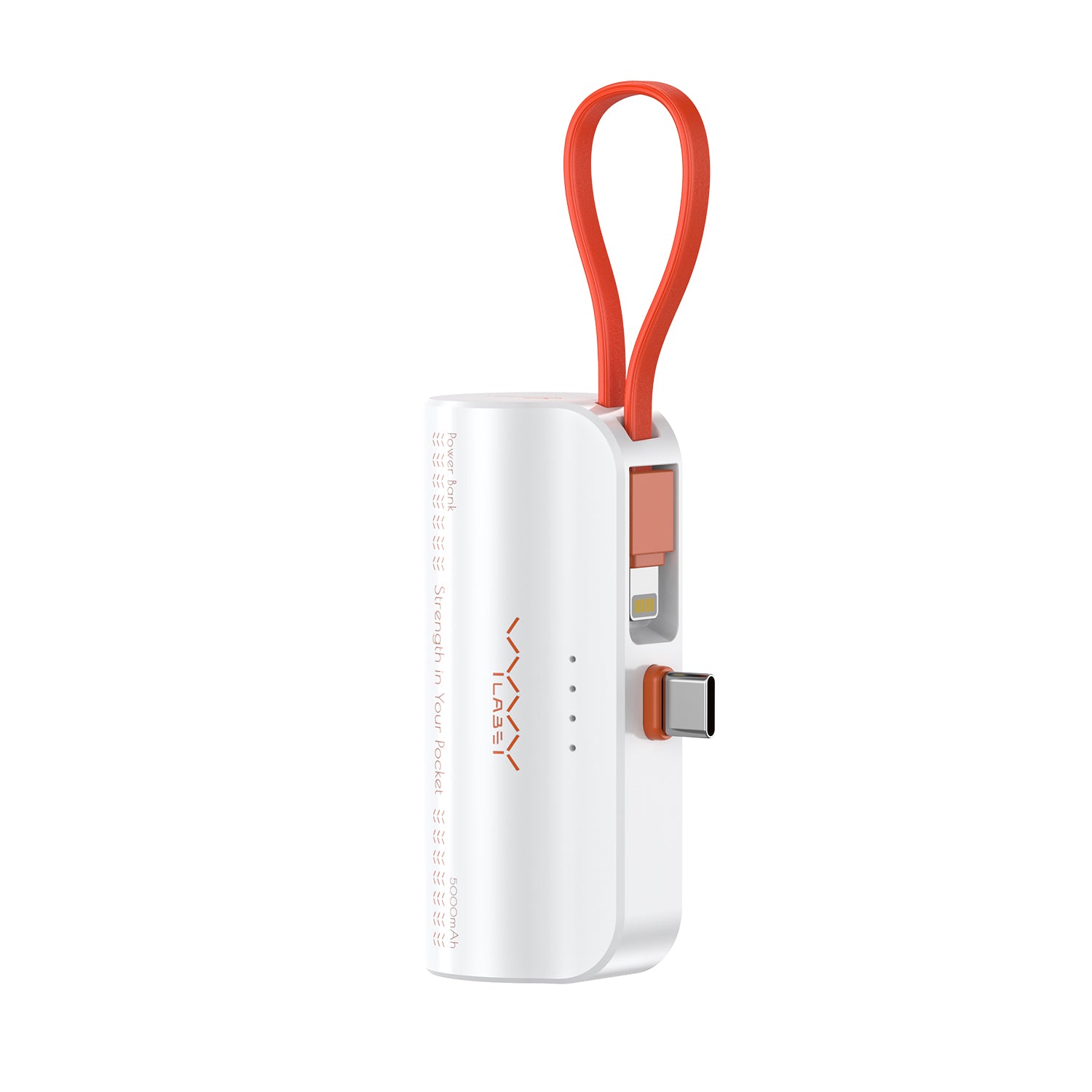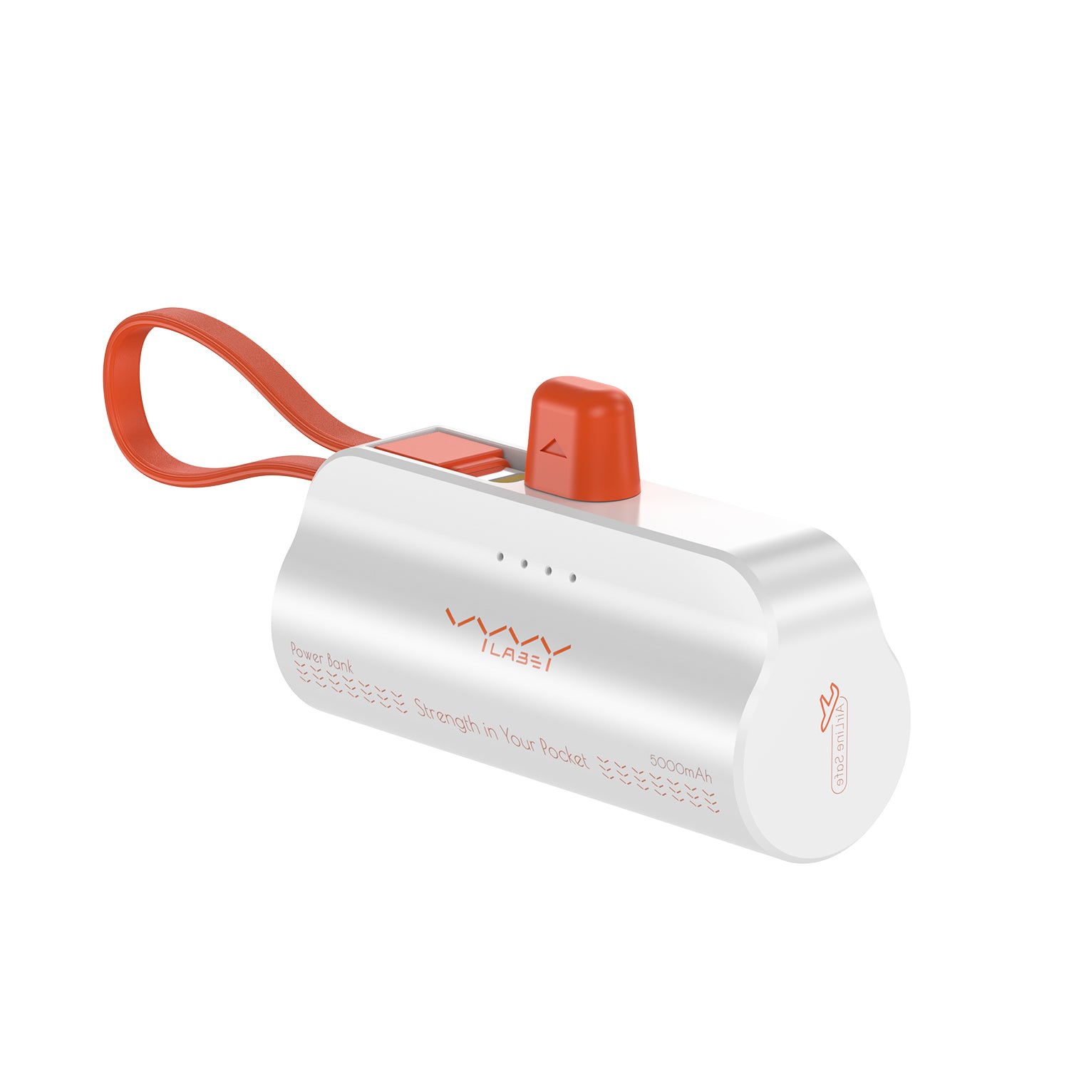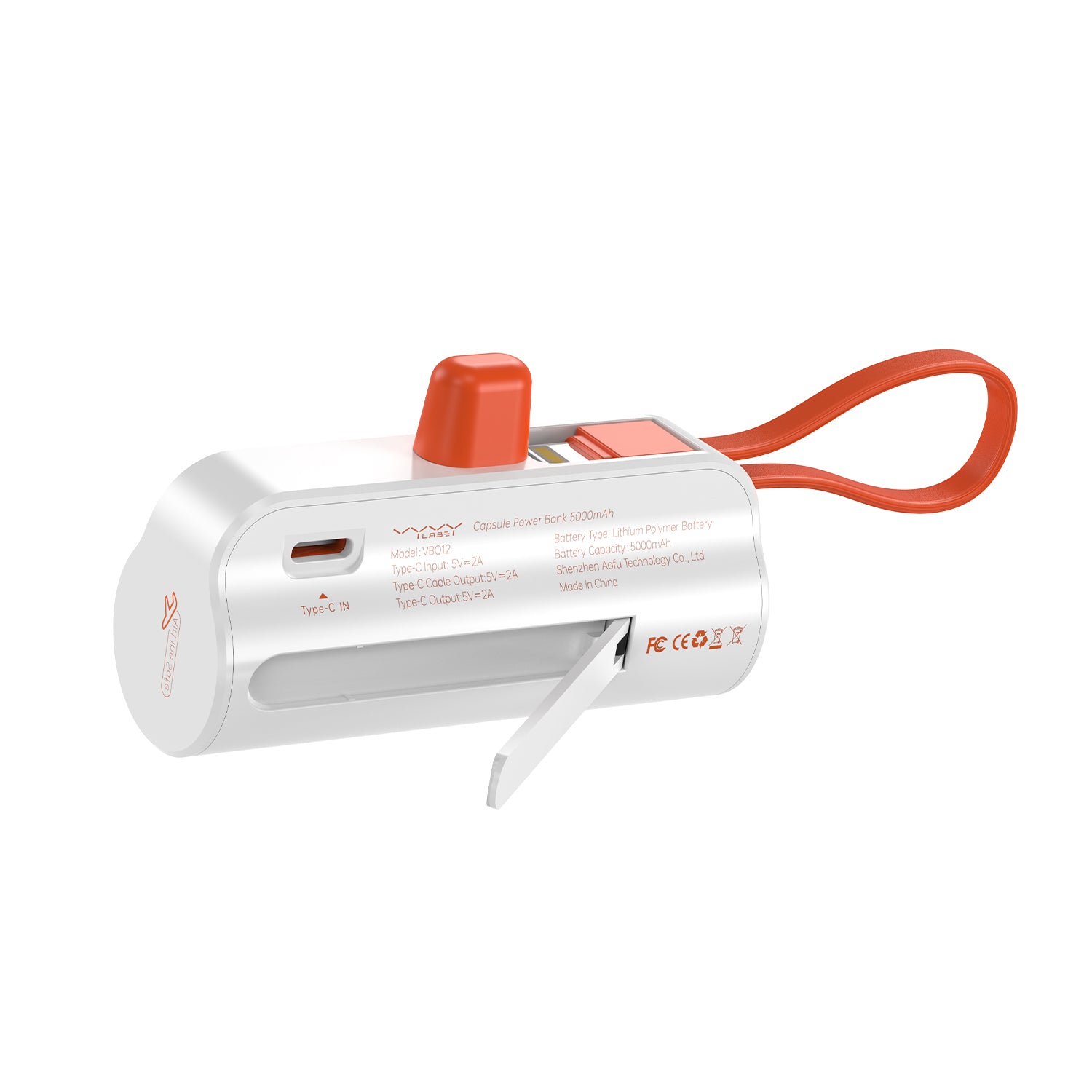 Vyvylabs Q12 Capsule Power Bank 5000mAh Type-C With iP Cable and Stand - White