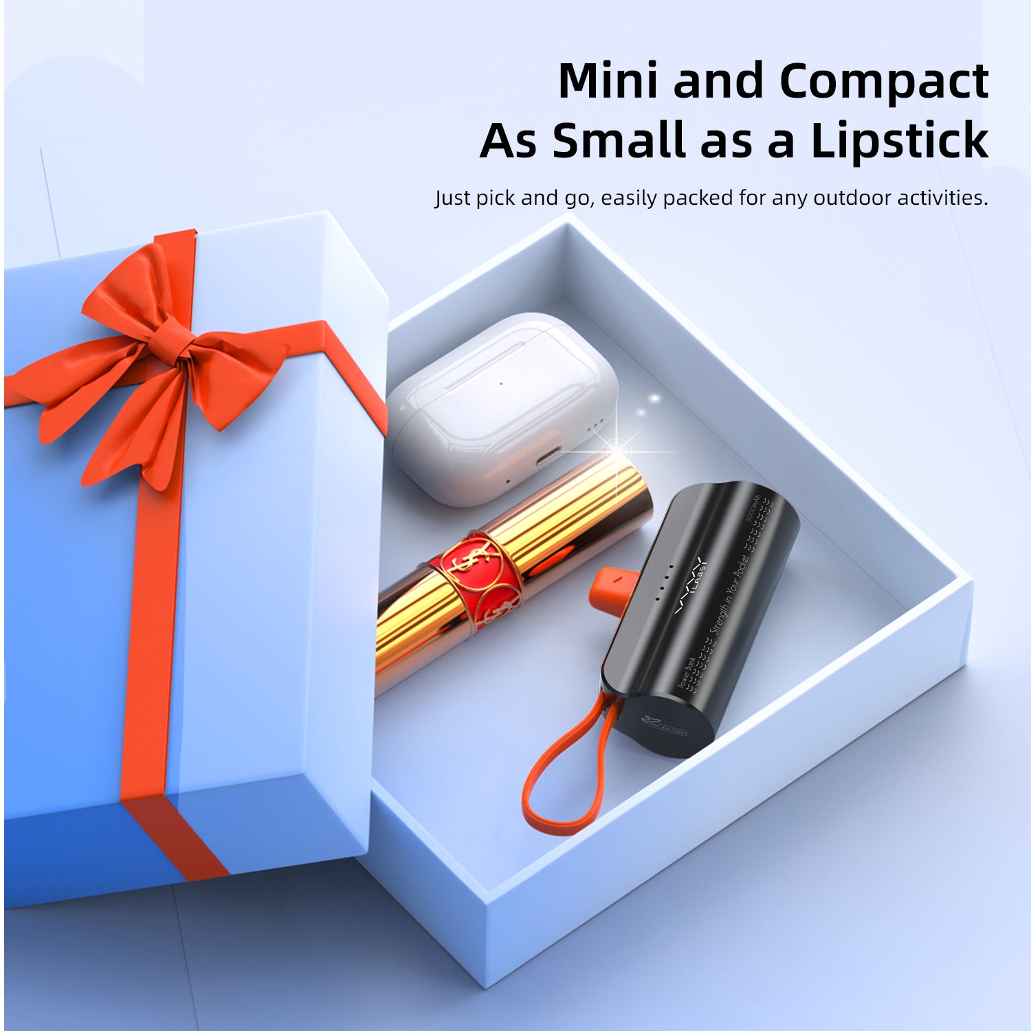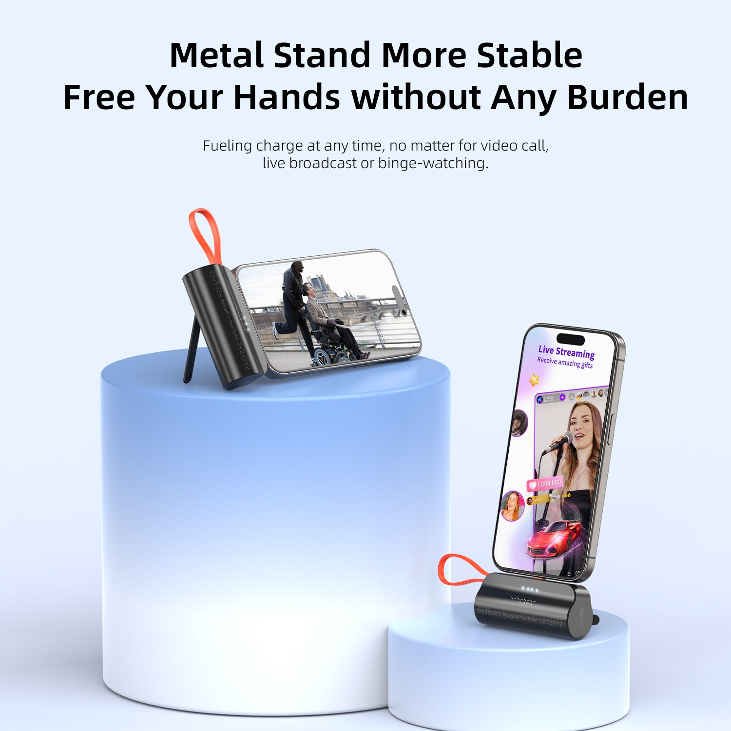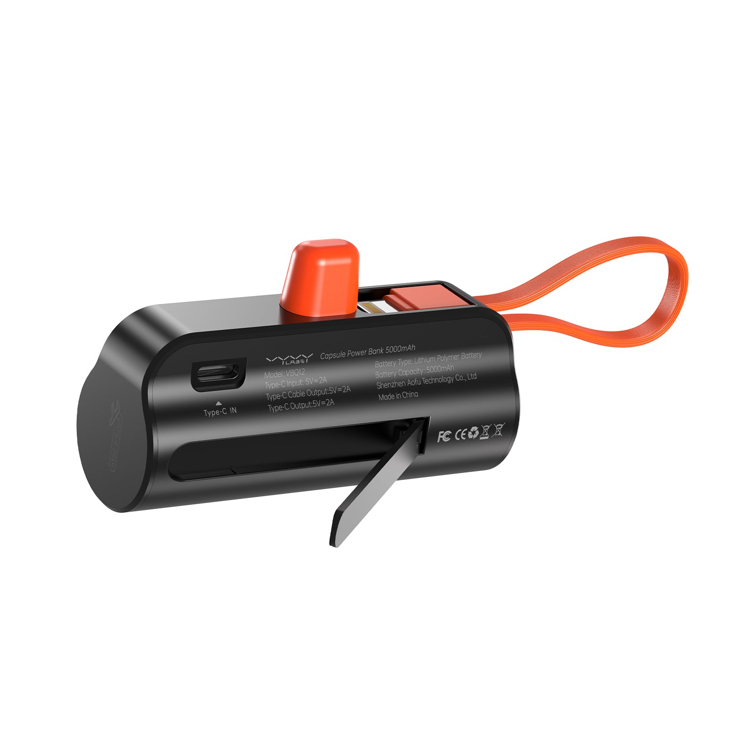 Vyvylabs Q12 Capsule Power Bank 5000mAh Type-C With iP Cable and Stand - White