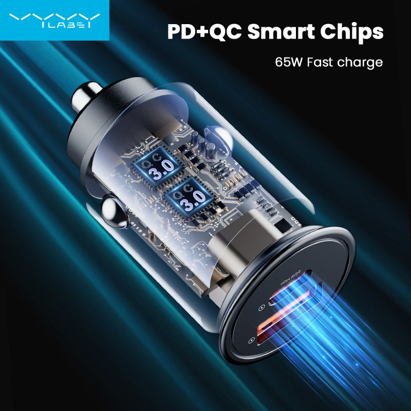 Reliable On-the-Go Charging: The Vyvylabs Round Dot Dual Fast Charge Car Charger 65W A+C