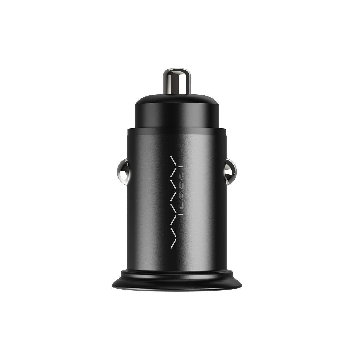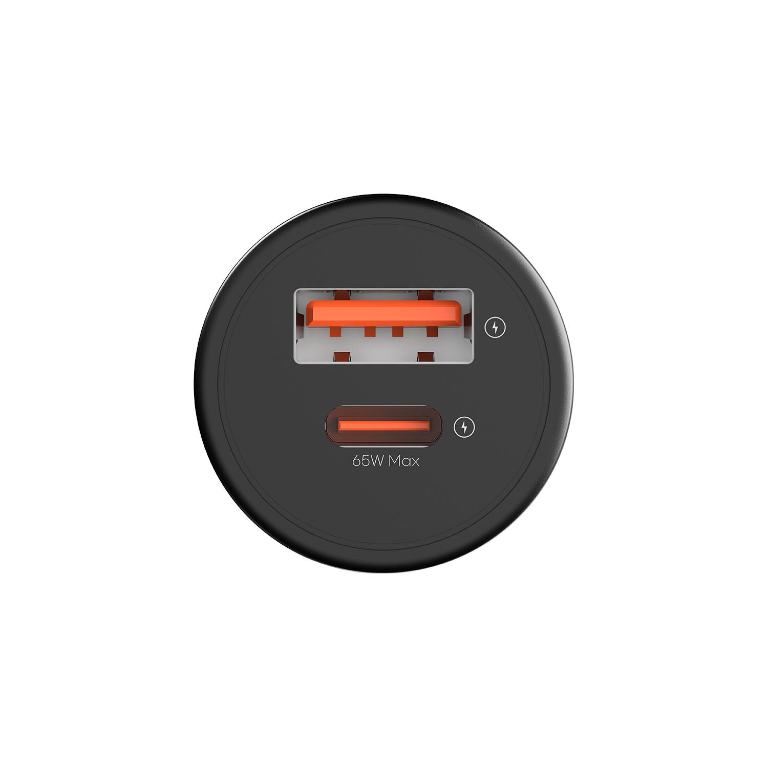 Vyvylabs Round Dot Dual Fast Charge Car Charger 65W A+C Compact and Reliable - Black