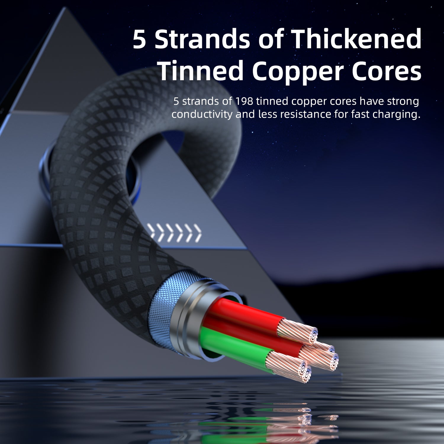 Durability and Quality: Made from high-quality nylon and aluminum alloy materials, this cable is built to last, with a braided shielding that protects against damage and wear.