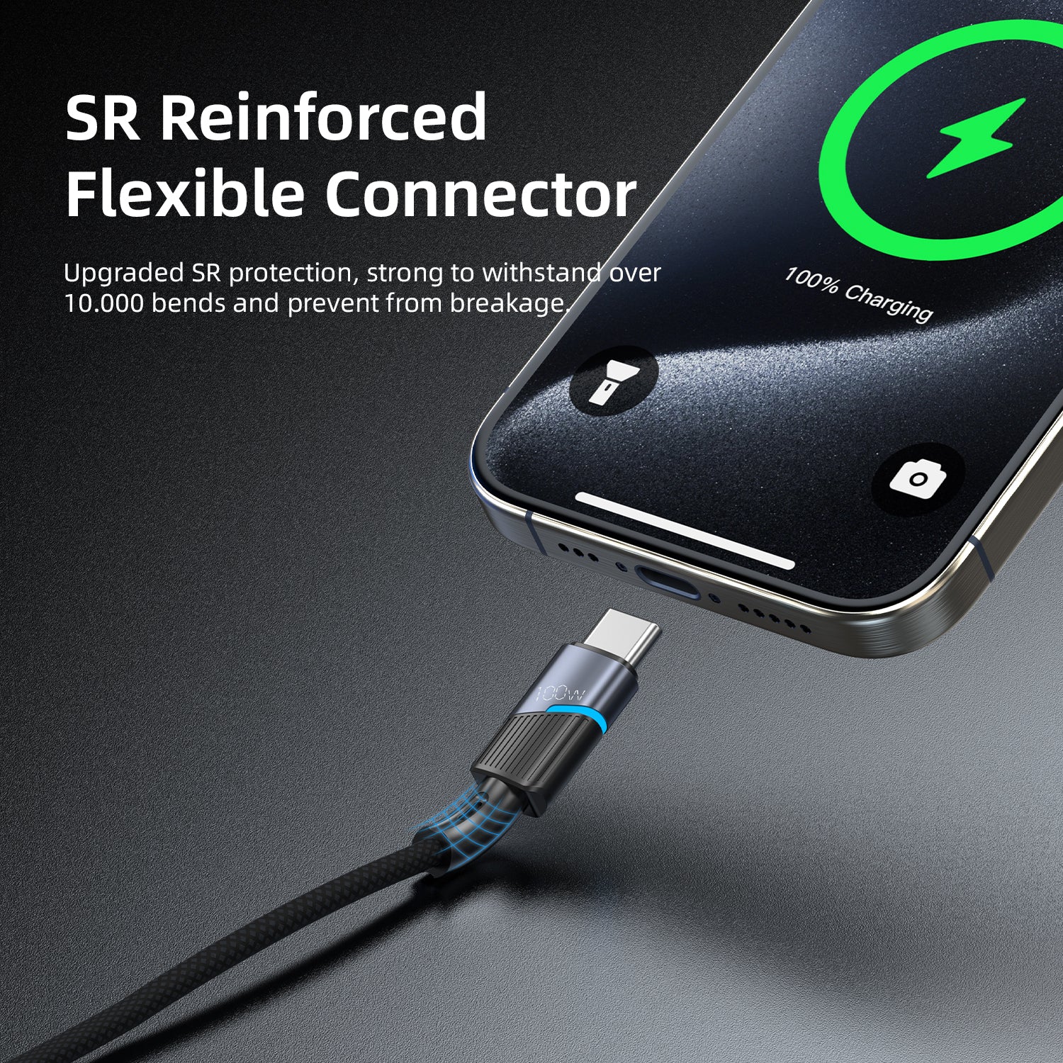 Fast Charging Capability: This Vyvylabs Crystal Series 1M 100W Fast Charging Type-C Data Cable supports fast charging, allowing users to quickly recharge their iPhone & Samsung devices