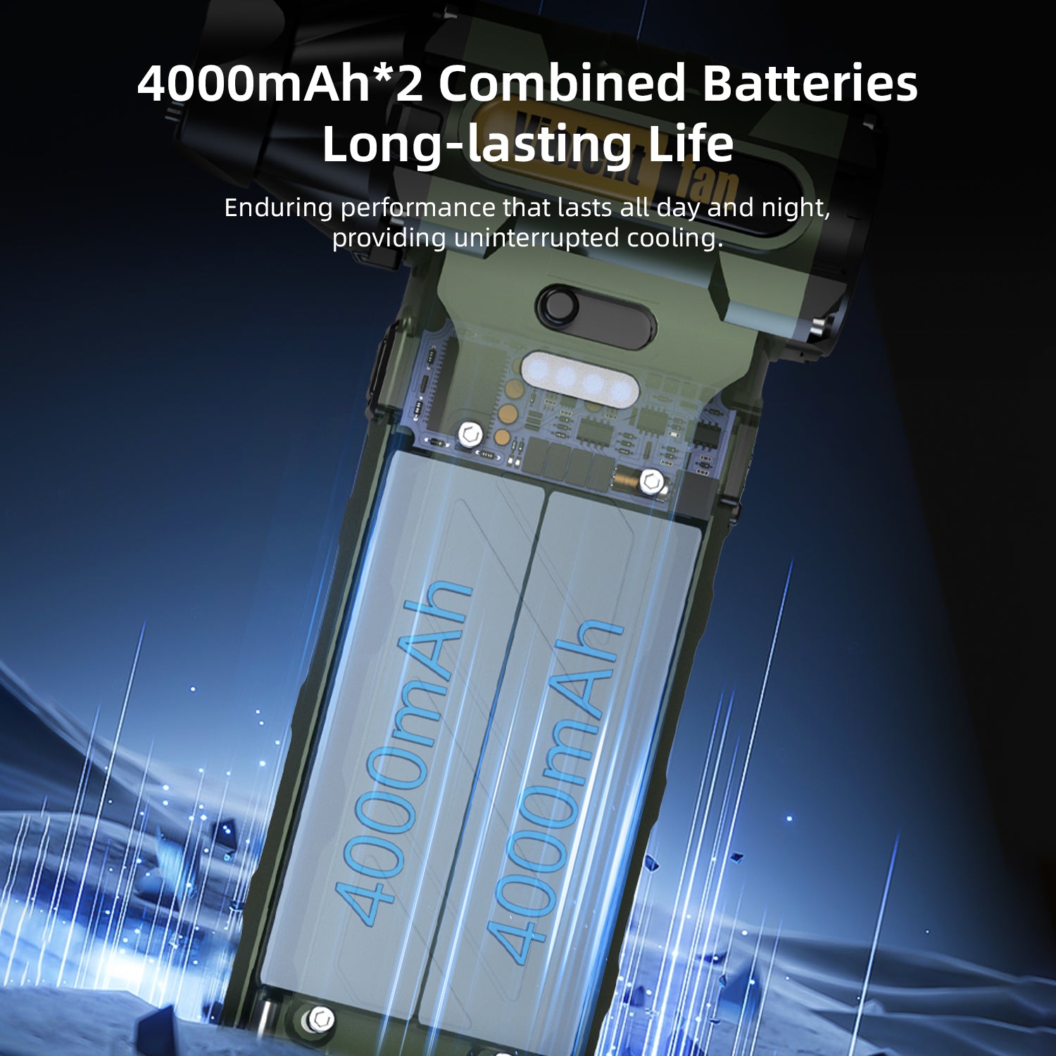 4000mAh*2 Combined Batteries: Long-lasting Life Enduring performance that lasts all day and night, providing uninterrupted cooling.