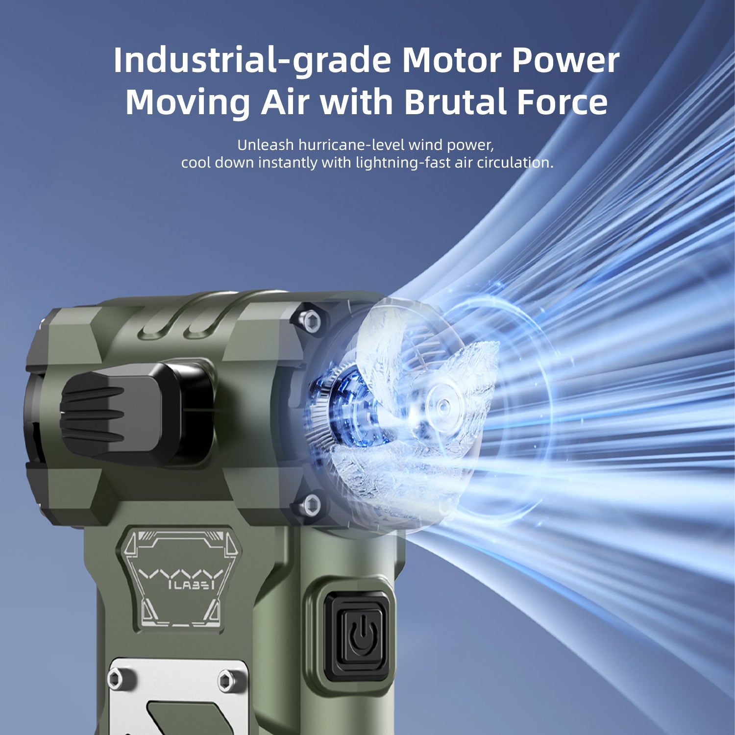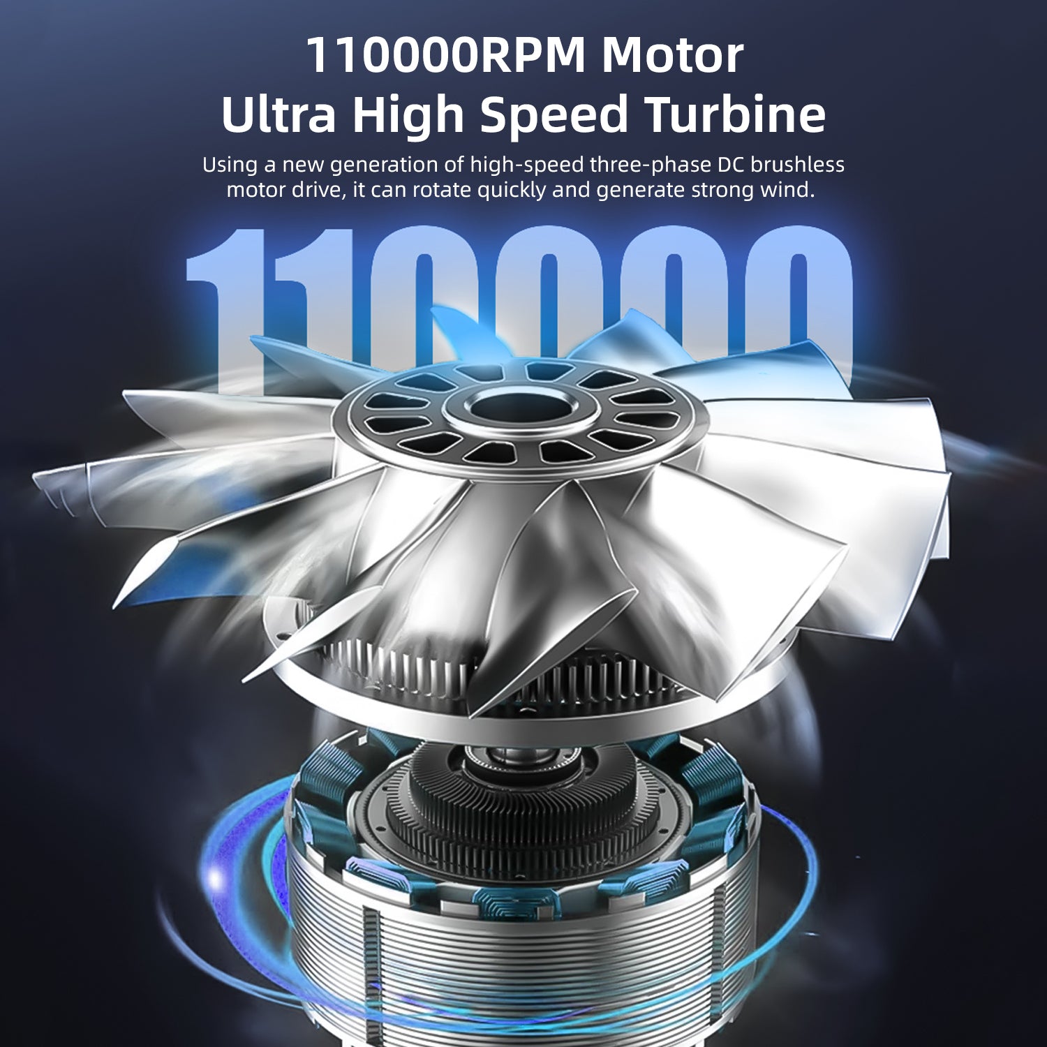 Industrial-grade Motor Power Moving Air with Brutal Force: Unleash hurricane-level wind power, cool down instantly with lightning-fast air circulation.110000RPM Motor Ultra High Speed Turbine Using a new generation of high-speed three-phase DC brushless motor drive, it can rotate quickly and generate strong wind.