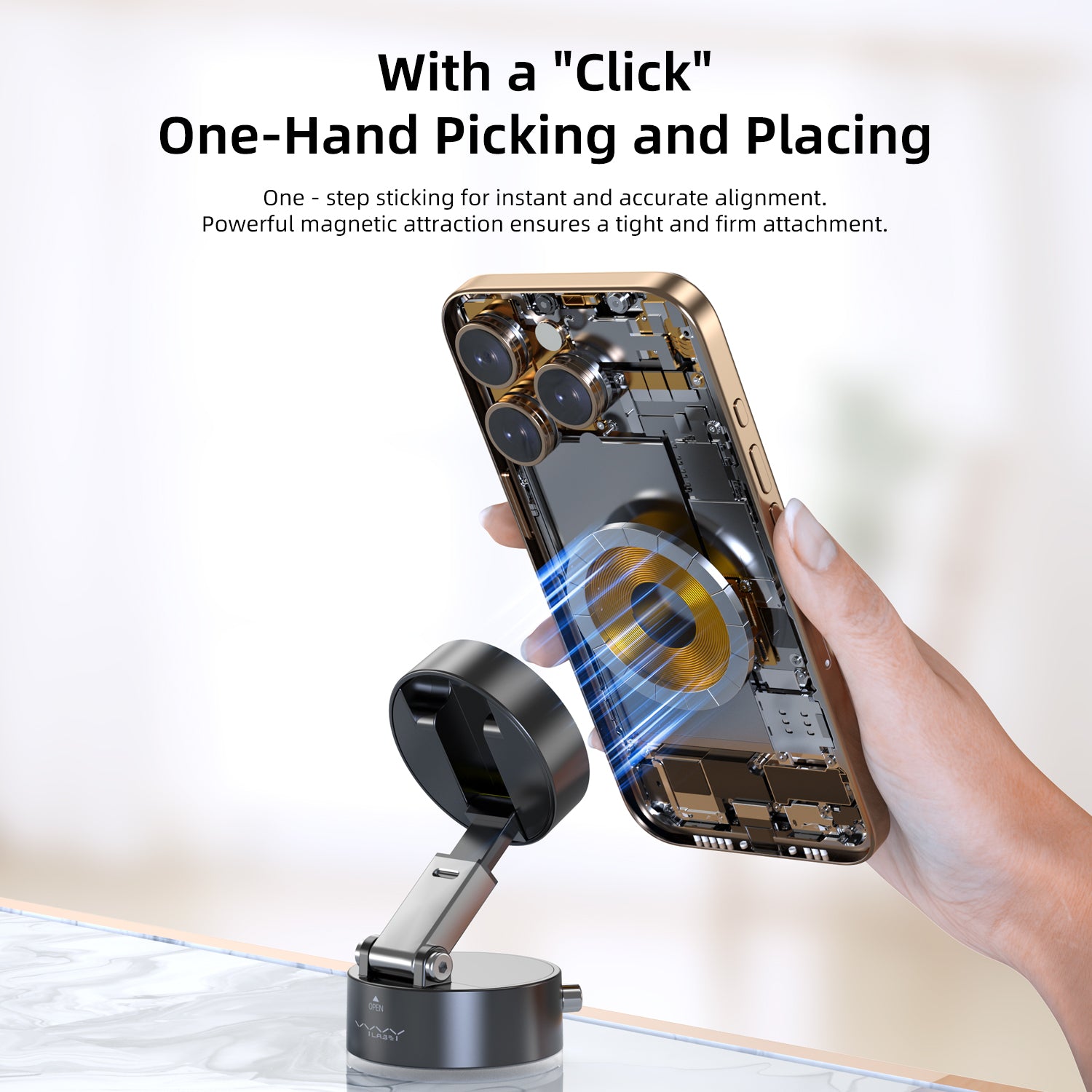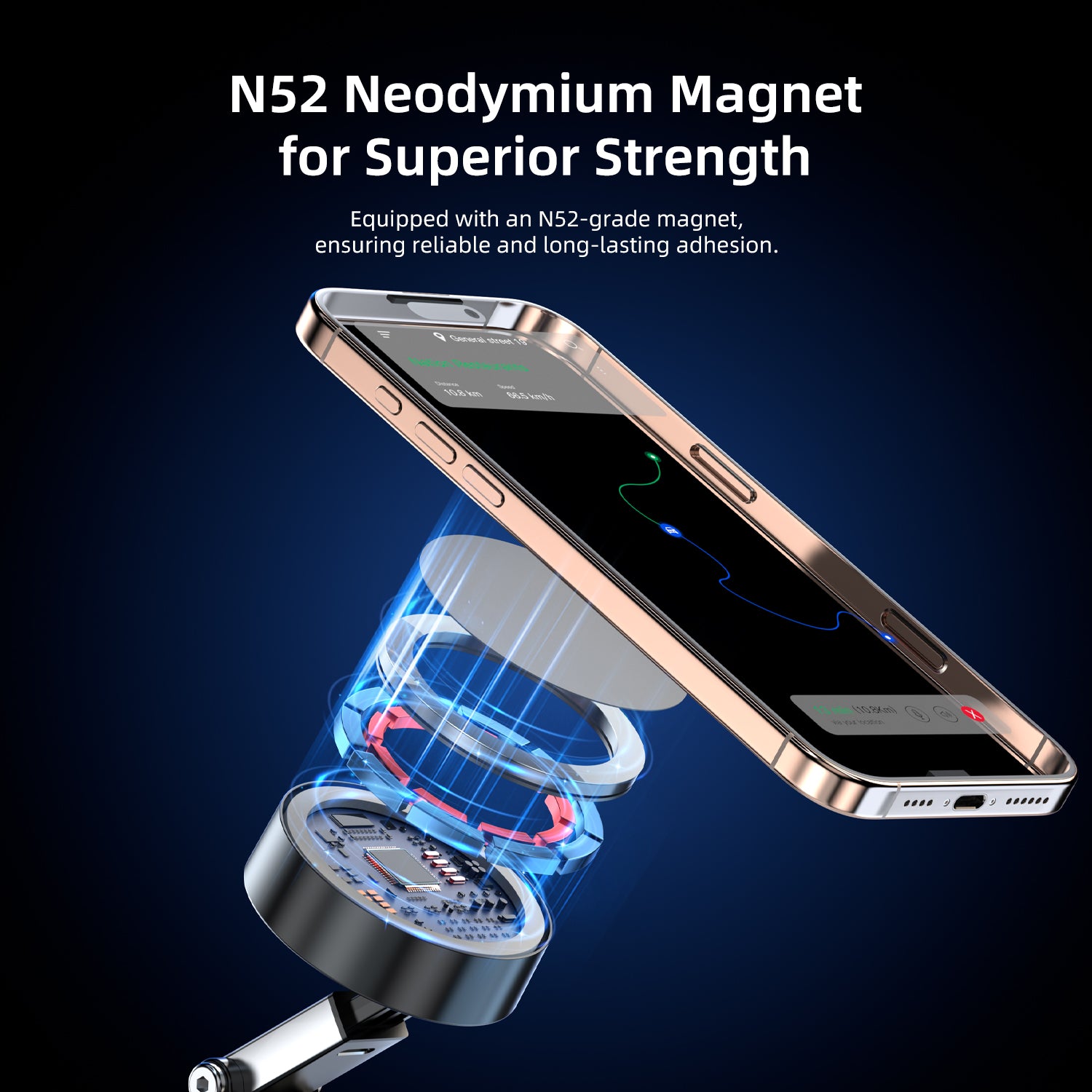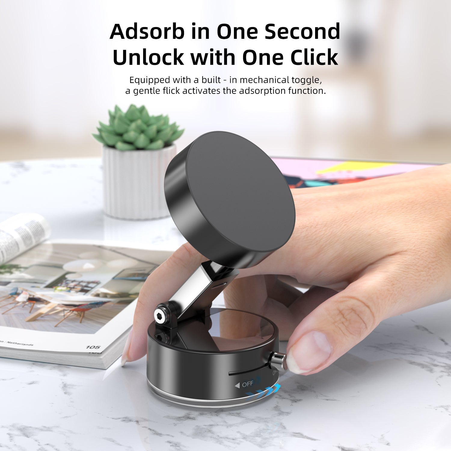 Strong Magnetic Force: Double-row N52 strong magnetic magnets provide a powerful 20N magnetic suction, ensuring the phone holder stays securely in place. The combination of magnetic and vacuum suction technology works on various surfaces, including iron, without risk of falling.